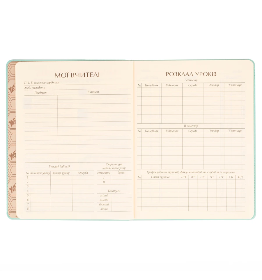 - Інформаційний блок - дані учня, вчителів і школи, розклад уроків і дзвінків, табель успішності