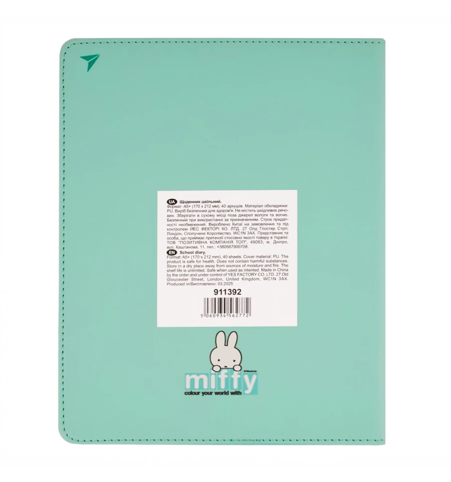 Щоденник PU "Miffy" торгової марки YES призначений для заповнення домашніх завдань учнем, виставлення оцінок вчителями та батьківського контролю за успішністю