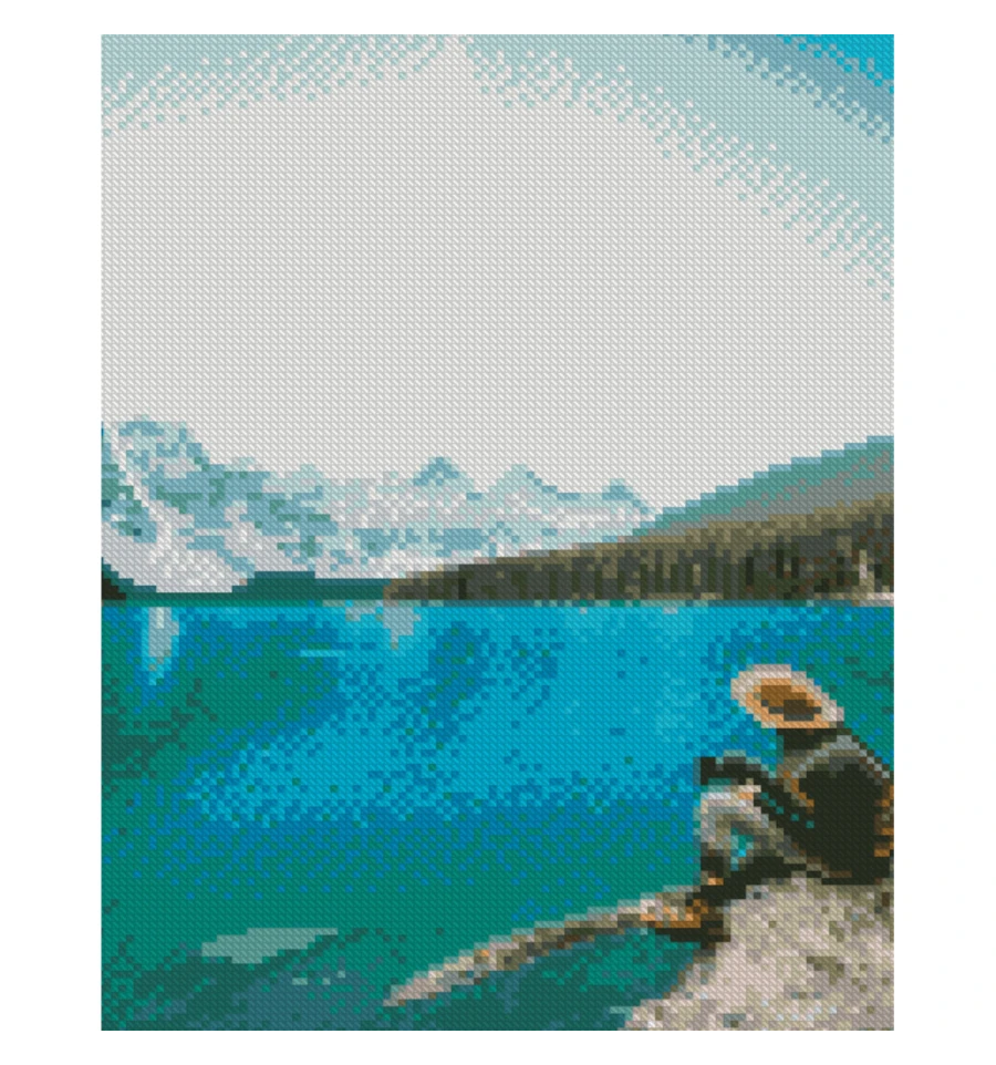 Алмазна мозаїка ПРЕМІУМ Турист на фоні моря розміром 30х40 см (HX504)