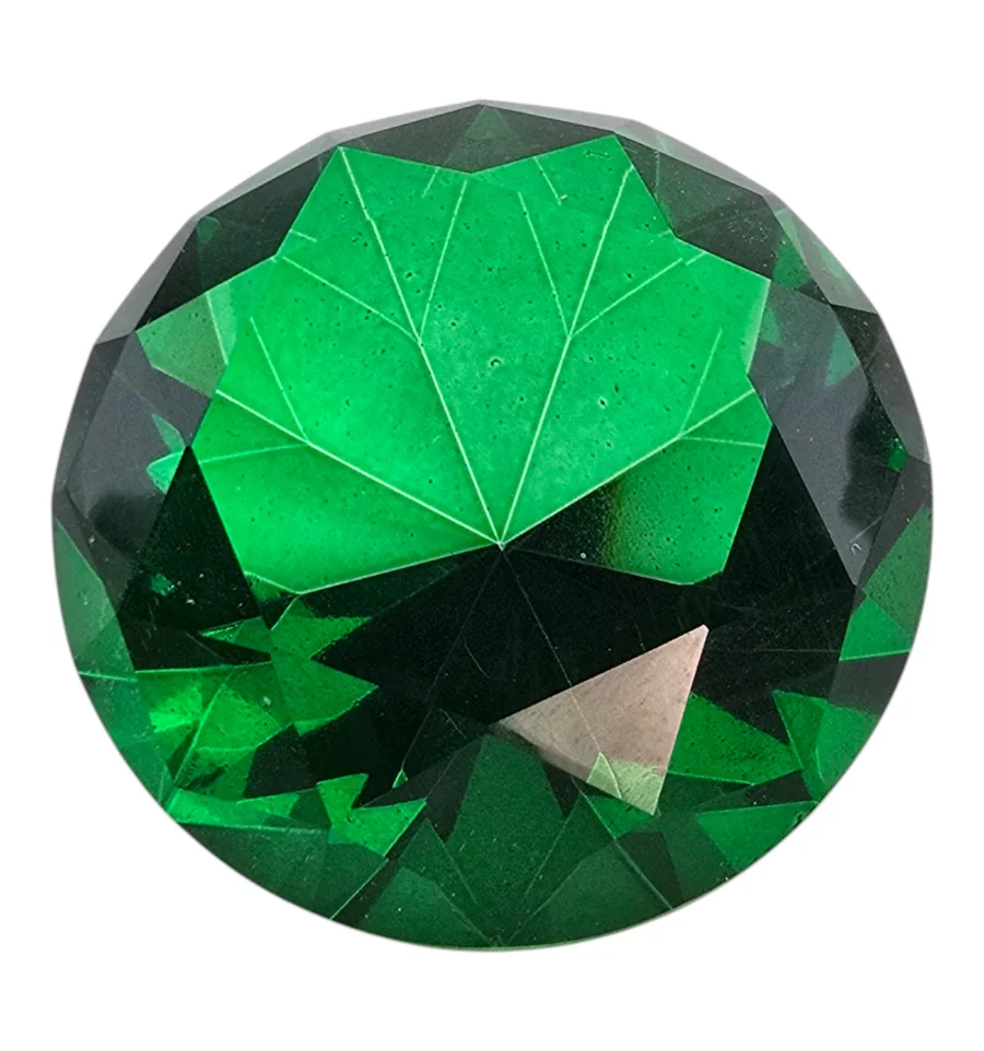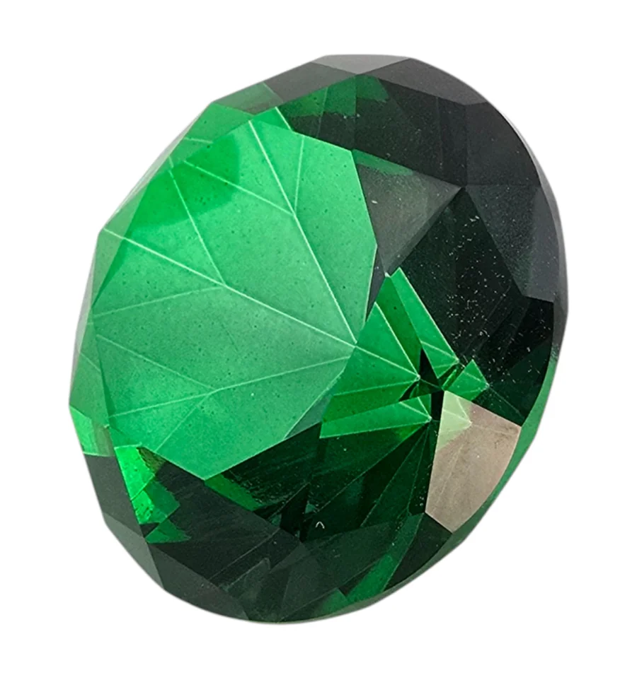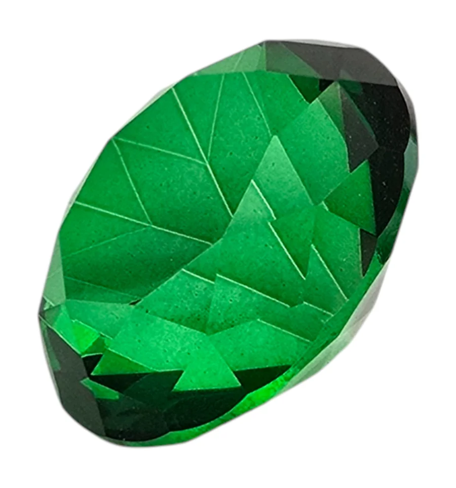 Додайте розкоші та яскравих акцентів у ваш простір або кадр з нашим великим декоративним кристалом глибокого смарагдового кольору. Завдяки класичній ограновуванні у формі діаманту, камінь чудово заломлює світло, створюючи гарні відблиски.