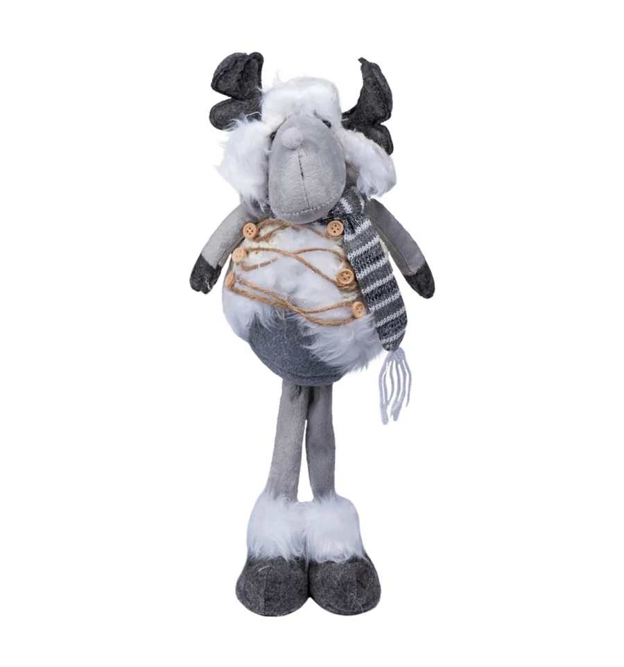 Новорічний олень - прекрасний декор для прикрашання інтер‘єру до різдвяних канікул, а також чудовий варіант для подарунка. Виріб довгі роки даруватиме святковий настрій, створюючи затишну атмосферу в домі. Розмір: 20х12х45 см. Склад: фланель, трикотажна тканина, поліестер, джутова мотузка, пінопласт, повстяна тканина, полирезин.
