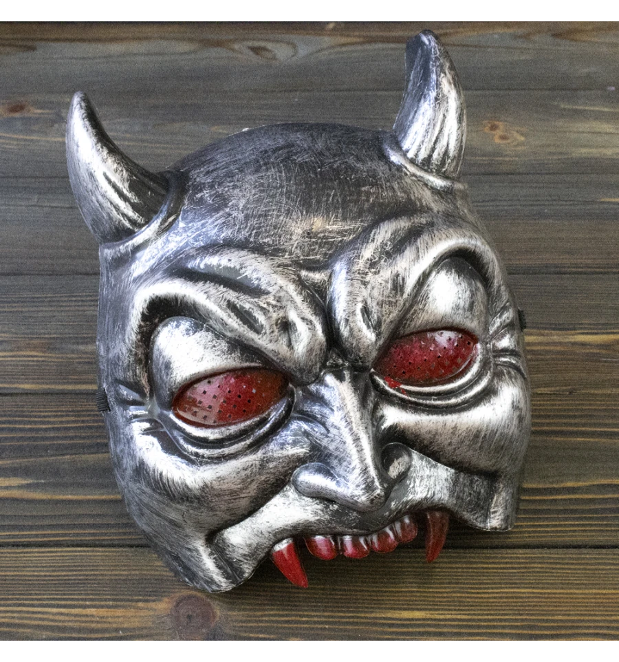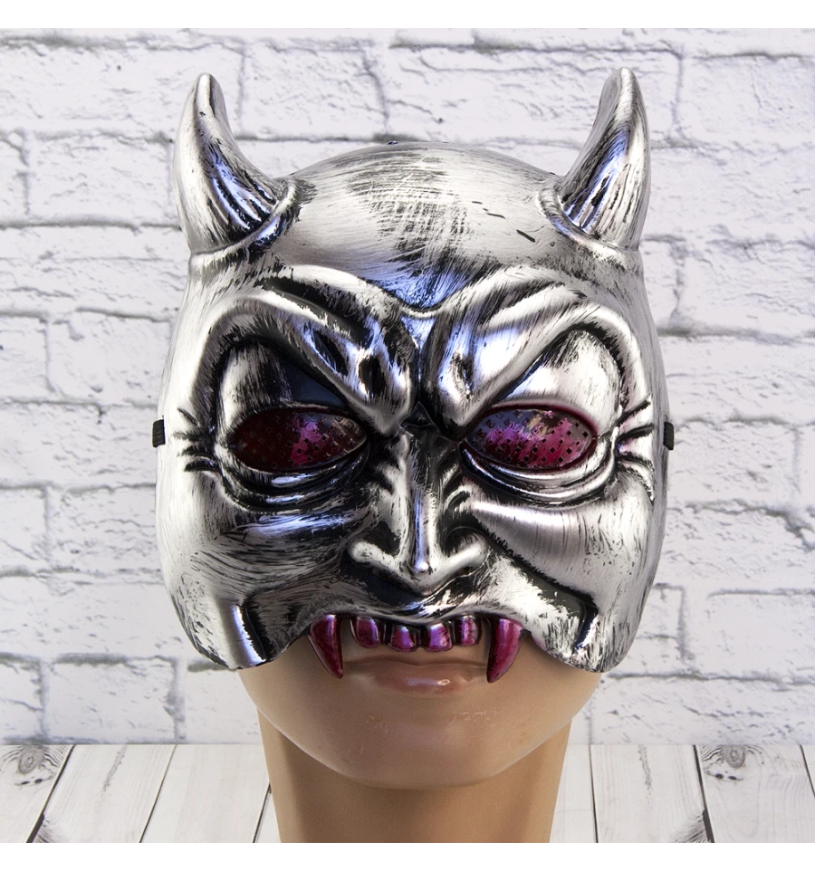 Напівмаска Демон (срібна) (Halloween Scary Horror mask) виготовлена з пластику. Срібна маска з чорними елементами закриває половину обличчя. Маска з рогами та червоними іклами. Розмір виробу: універсальний. Маска для вечірки надійно фіксується на голові за допомогою чорної гумки. Карнавальні маски принесуть родзинку в образ вашого персонажа на тематичній вечірці, карнавалі чи маскараді. Різноманітність образів, безумовно, полегшить пошук оригінального образу. Наш магазин пропонує карнавальні аксесуари оптом та для дропшиперів, ви можете оформити замовлення на сайті PrazdnikShop та задати будь-які запитання менеджеру, замовивши дзвінок на нашому сайті.