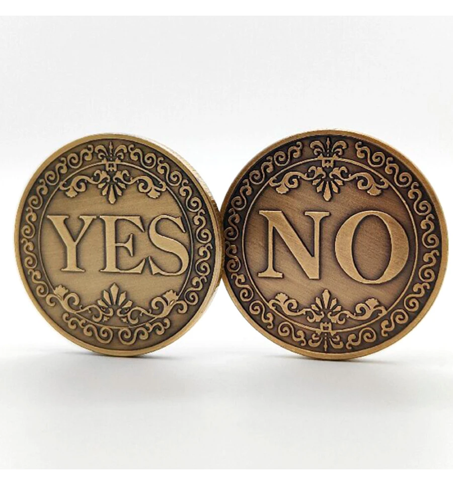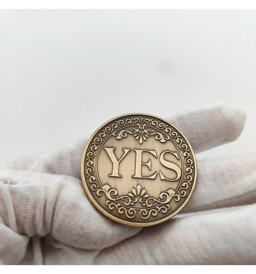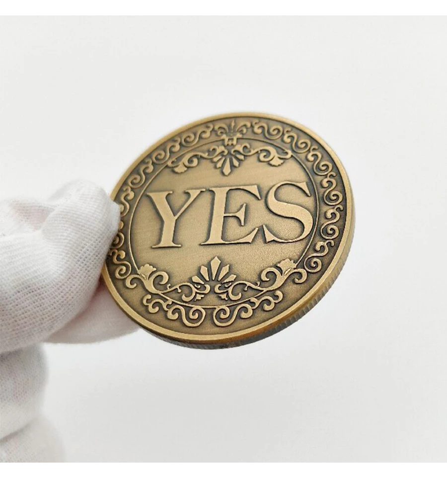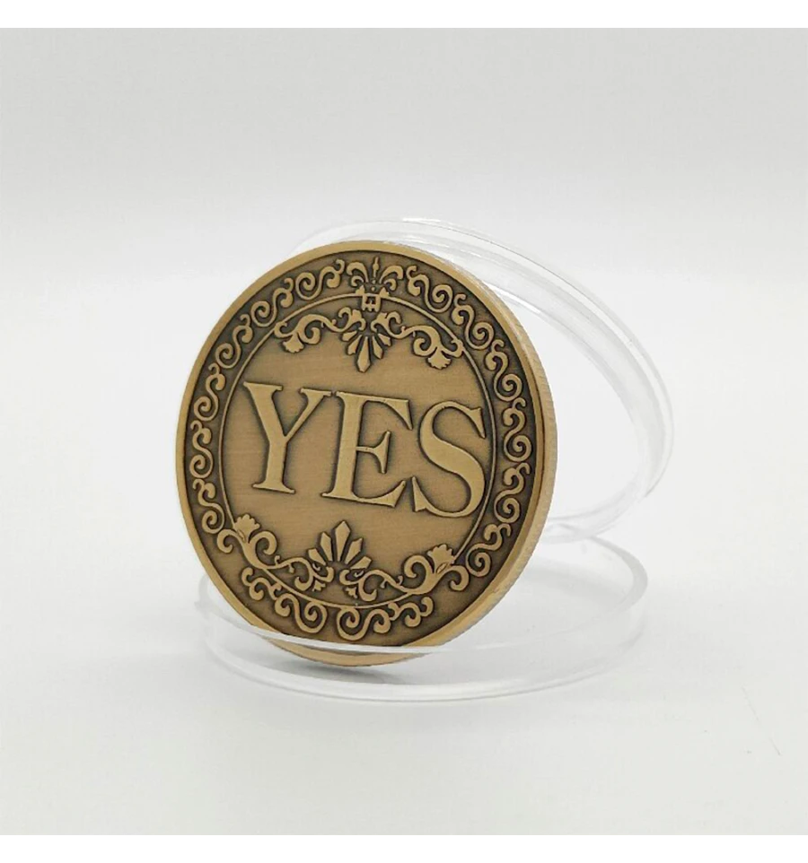 Сувенірна монета прийняття рішень YES/NO 3703 (золото антик) - Ваш персональний оракул. Вагаєтесь із вибором? Не знаєте, яку відповідь дати? Дозвольте долі вирішити за вас за допомогою цієї стильної сувенірної монети! Це не просто аксесуар, а веселий та оригінальний спосіб розвіяти сумніви або розважити друзів у компанії. Монета має стилізоване під старовину матове покриття з благородним відливом для шанувальників вінтажу. На одній стороні нанесено чіткий напис YES (ТАК). На іншій - NO (НІ). Обидві сторони прикрашені витонченим бароковим візерунком по колу, що додає монеті естетичного вигляду. Чому це крутий подарунок? Допомагає швидко та з гумором прийняти дрібні побутові рішення. Стильний сувенір, який чудово виглядає в колекції, на робочому столі або в гаманці як талісман. Та просто оригінальний презент. Чудова ідея для подарунка колезі, другу або на вечірку.