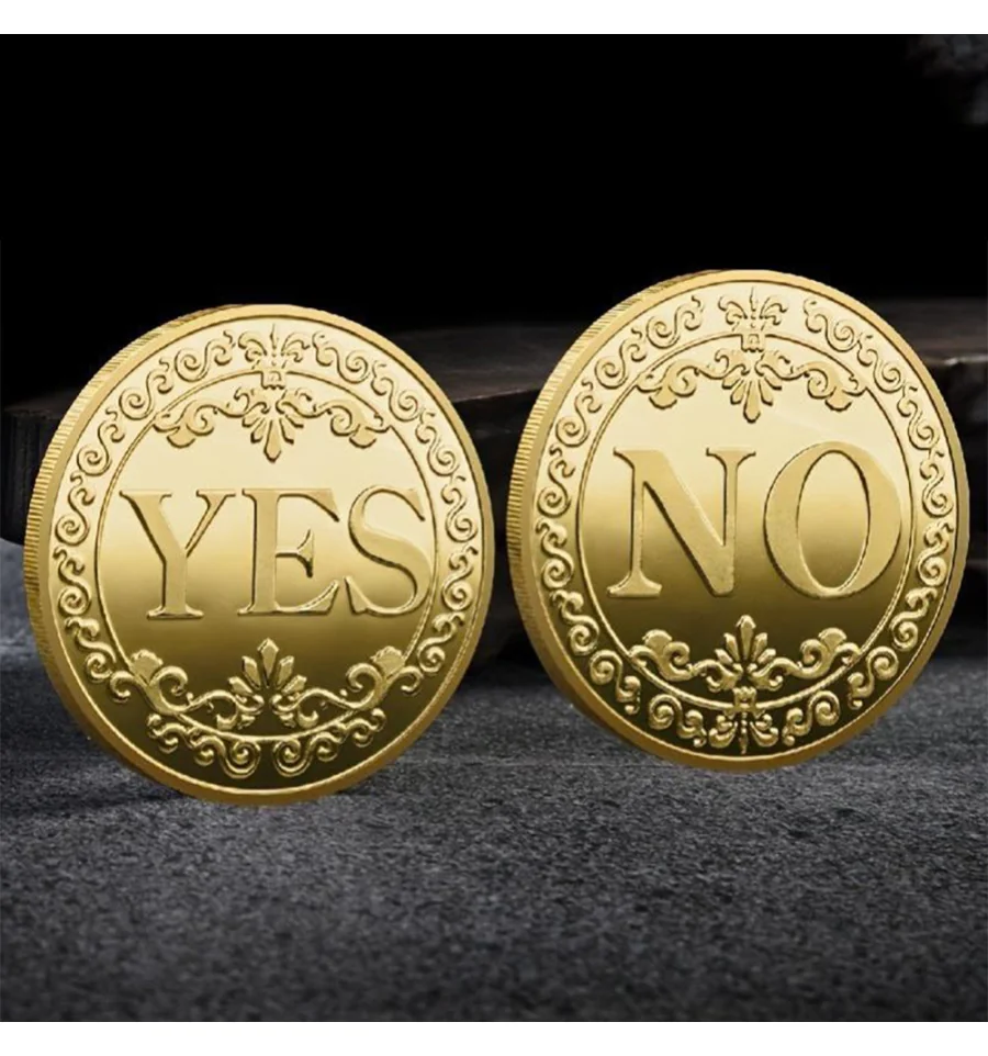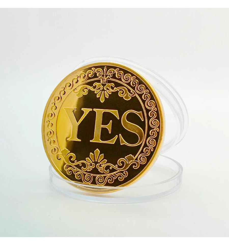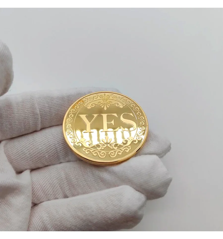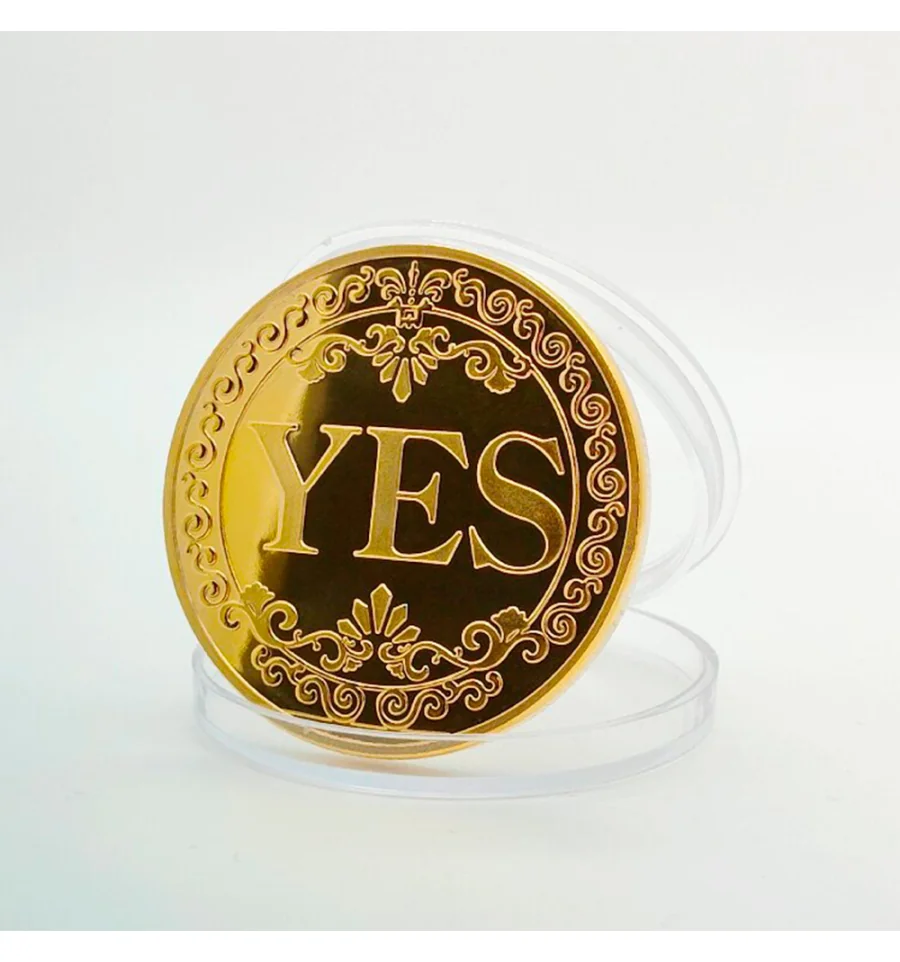Сувенирная монета принятия решений YES/NO 3701 (золотая) - Ваш персональний оракул. Вагаєтесь із вибором? Не знаєте, яку відповідь дати? Дозвольте долі вирішити за вас за допомогою цієї стильної сувенірної монети! Це не просто аксесуар, а веселий та оригінальний спосіб розвіяти сумніви або розважити друзів у компанії. Монета має сяюче та вишукане золотисте покриття для тих, хто любить розкіш. Монета виготовлена з високоякісного металу, має приємну вагу та високу зносостійкість. На одній стороні нанесено чіткий напис YES (ТАК). На іншій - NO (НІ). Обидві сторони прикрашені витонченим бароковим візерунком по колу, що додає монеті естетичного вигляду. Чому це крутий подарунок? Допомагає швидко та з гумором прийняти дрібні побутові рішення. Стильний сувенір, який чудово виглядає в колекції, на робочому столі або в гаманці як талісман. Та просто оригінальний презент. Чудова ідея для подарунка колезі, другу або на вечірку.