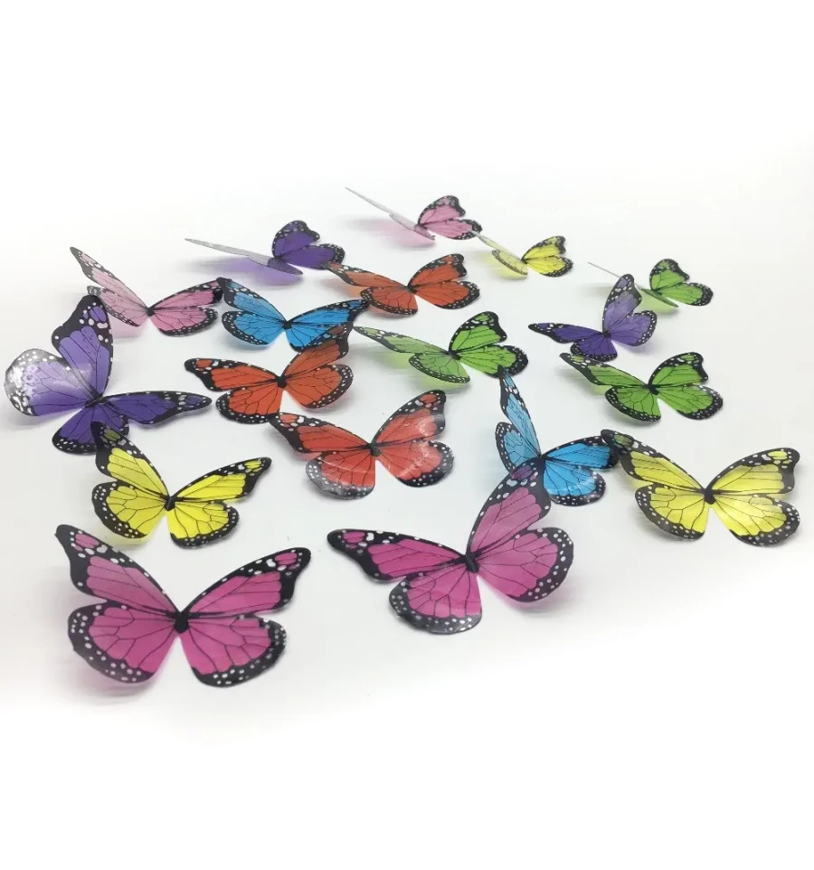 Набір декоративних метеликів на стіну 3D H-Z-104 (уп. 18 шт) - швидкий спосіб оживити інтер’єр. Створіть легку, об'ємну та динамічну композицію на будь-якій поверхні за лічені хвилини! Наші декоративні метелики 3D - це ідеальний спосіб додати яскравості, свіжості, елегантності та весняного настрою у Ваш дім чи офіс. В одному наборі Ви отримуєте 18 штук метеликів різного розміру, що дозволяє створювати реалістичні та багатошарові композиції. Набір містить метеликів розміром від 7х5см до 5х3,5см Метелики виготовлені з якісного вінілу і не бояться вологи, що робить їх придатними для декорування ванних кімнат, кухонь або відкритих, але захищених просторів. Крильця метеликів можна легко вигинати у потрібному напрямку, надаючи композиції бажаного об'єму та ілюзії польоту. У комплекті вже є двосторонній скотч, що забезпечує швидке та надійне кріплення до стін, меблів чи скла без пошкодження поверхні. Цей затребуваний товар доступний для продажу оптом та по системі дропшиппінгу! Ми пропонуємо вигідні умови для розширення Вашого асортименту декору, забезпечуючи надійну поставку популярних та якісних товарів. Набір декоративних метеликів на стіну 3D H-Z-104 (уп 18 шт) ідеально підходить для: дитячих кімнат, спалень, весняного чи літнього декору, а також для швидкого оновлення інтер'єру.