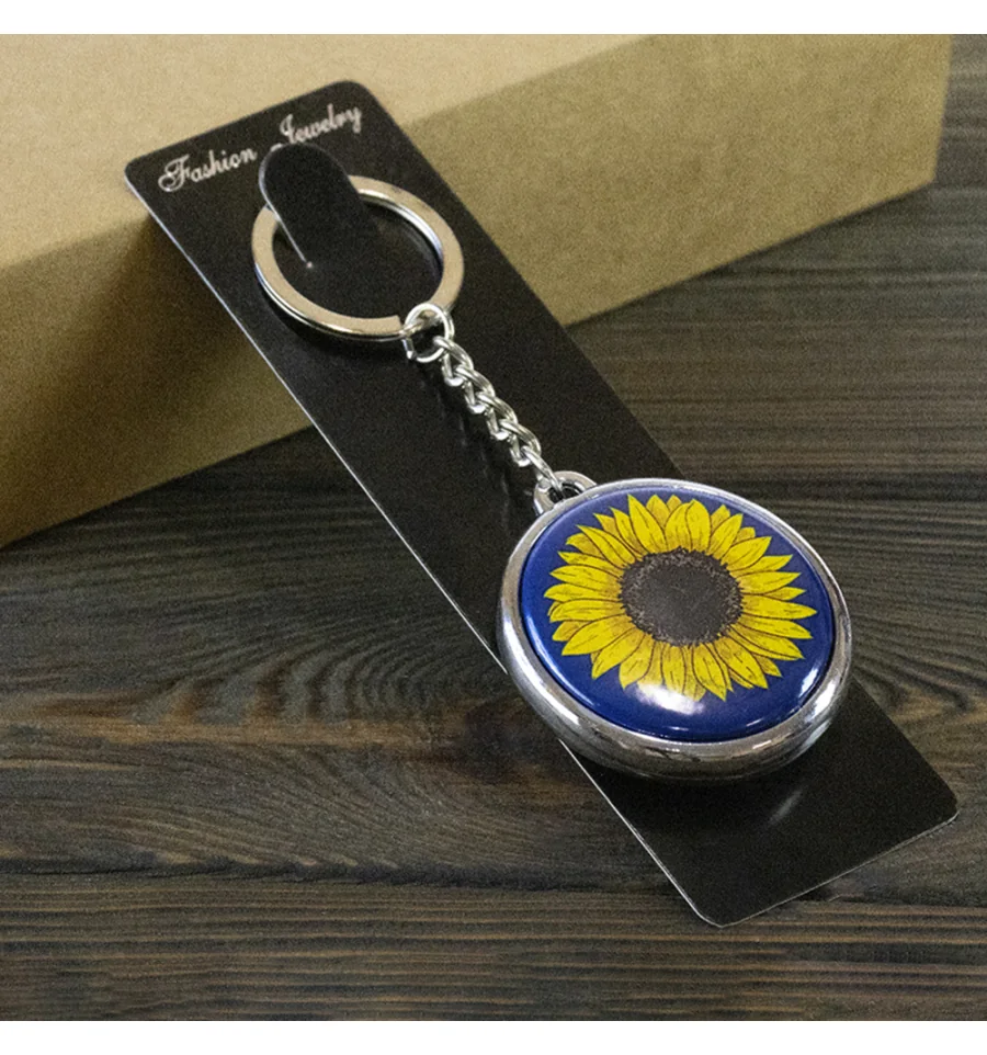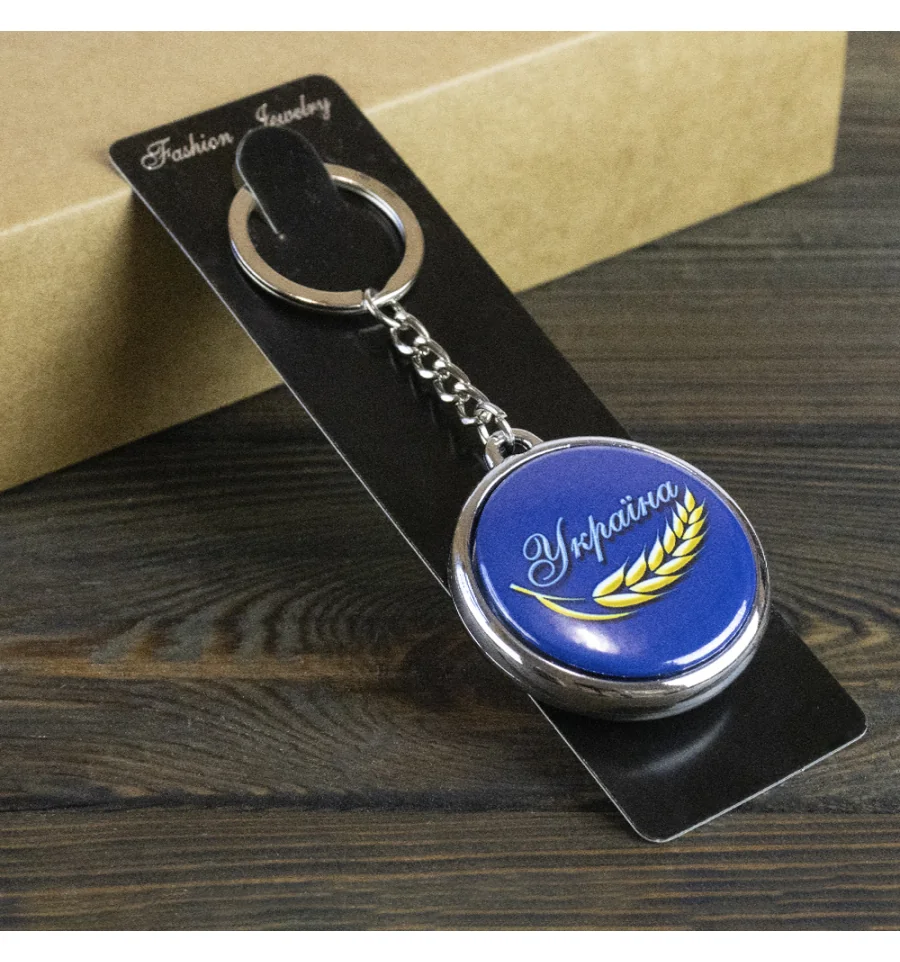 Брелок 6977 об'ємний Україна – Символи Незламності. Цей об'ємний, двосторонній брелок є яскравим та знаковим аксесуаром, що несе у собі глибокий національний зміст і стане чудовим сувеніром. Брелок виконаний у формі круглого медальйона в синьо-жовтій кольоровій гамі, що символізує український дух, родючість та мирне небо. Брелок є двостороннім з різним принтом, кожен з яких відображає ключові українські символи: З одного боку зображено яскравий Соняшник – символ сонця, життя та землі з іншого боку зображено стилізований напис "Україна" та золотий Колосок пшениці – символ багатства та врожаю. Завдяки глянцевому покриттю брелок має об'ємний вигляд, а кольори — насичені та стійкі. Це не просто сувенір, а сильний патріотичний талісман, який ідеально підходить для вираження любові до рідної землі. Він чудово підходить для ключів, сумок, рюкзаків. Чудовий вибір для подарунка, особливо для тих, хто цінує національну символіку. Несіть символи України з гордістю за допомогою цього яскравого брелока!