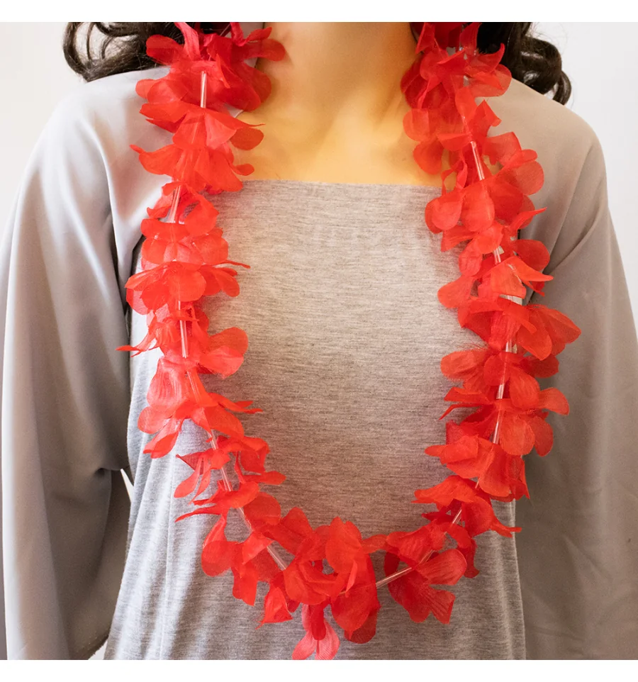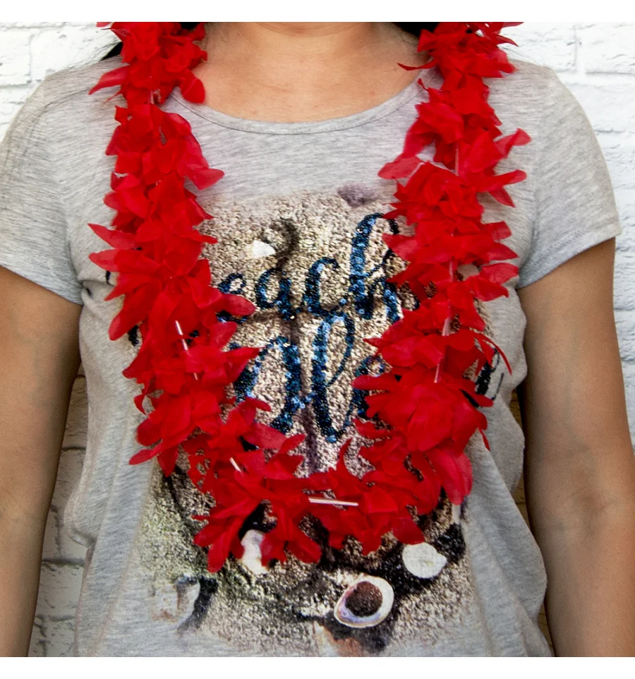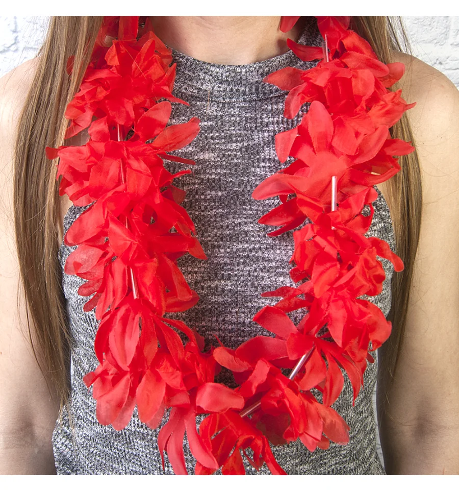 Без гавайських гірлянд з квітів весела тематична вечірка у гавайському стилі не обійдеться! Гавайські леї Гібіскус (червоні) надягають на дорогих і високоповажних гостей, але на маскараді пишні намисто лише підкреслять образ витонченої островитянки. Плавні рухи і танці, що зачаровують, у гавайських ритмах запам'ятаються гостям завдяки шикарним гірляндам на шиї. Вечірка перестає бути сірою та нудною, коли в її русло вливаються яскраво – барвисті Гаваї! Щоб гості відчули себе в потоці свята, інтернет-магазин PrazdnikShop рекомендує купити кожному гостю гавайський атрибут як оригінальний подарунок – тоді ніхто не забуде про казково проведений час!