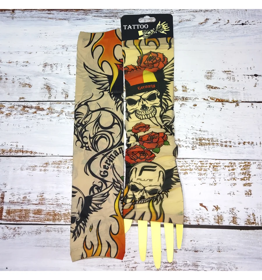 Ви мріяли про татуювання, але не могли наважитися? Бажаєте розширити асортимент Вашого магазину карнавальних аксесуарів? Тоді оптовий інтернет магазин PrazdnikShop пропонує купити нейлонові безшовні тату рукави з кольоровим малюнком. Тату рукава виготовлені з дихаючого матеріалу, за складом нагадує капрон з пористою структурою, завдяки чому шкіра під ними не потіє і не викликає подразнень. Мають універсальний розмір. Одягаються тату рукава від зап'ястя до плеча, поверх Ви можете одягати футболку або сорочку з лагідним рукавом. Знімні тату рукави реалістично виглядають на руці, створюючи враження ефектного татуювання. Рукави можна прати.