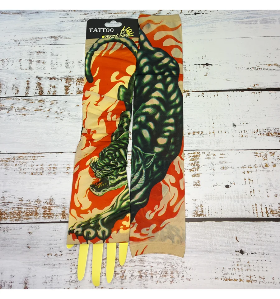 Ви мріяли про татуювання, але не могли наважитися? Бажаєте розширити асортимент Вашого магазину карнавальних аксесуарів? Тоді оптовий інтернет магазин PrazdnikShop пропонує купити нейлонові безшовні тату рукави з кольоровим малюнком. Тату рукава виготовлені з дихаючого матеріалу, за складом нагадує капрон з пористою структурою, завдяки чому шкіра під ними не потіє і не викликає подразнень. Мають універсальний розмір. Одягаються тату рукава від зап'ястя до плеча, поверх Ви можете одягати футболку або сорочку з лагідним рукавом. Знімні тату рукави реалістично виглядають на руці, створюючи враження ефектного татуювання. Рукави можна прати.