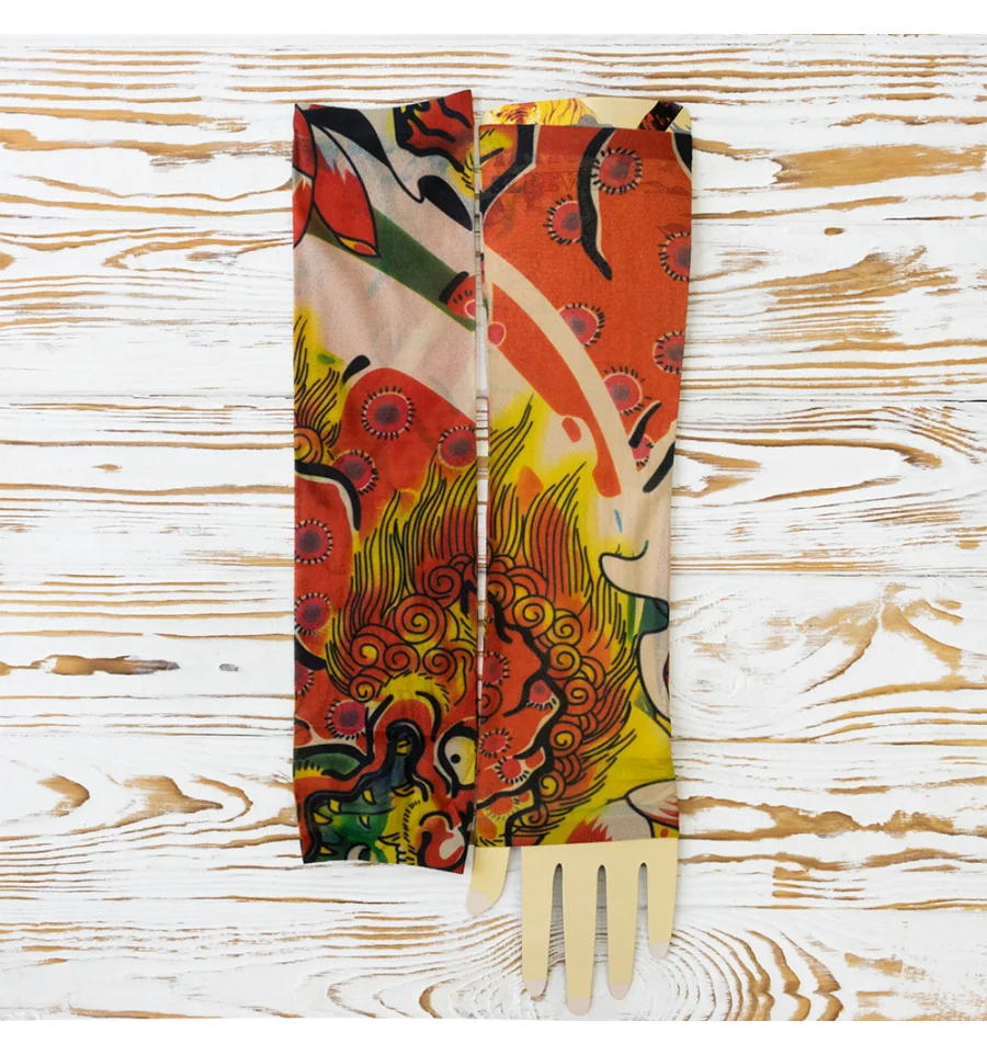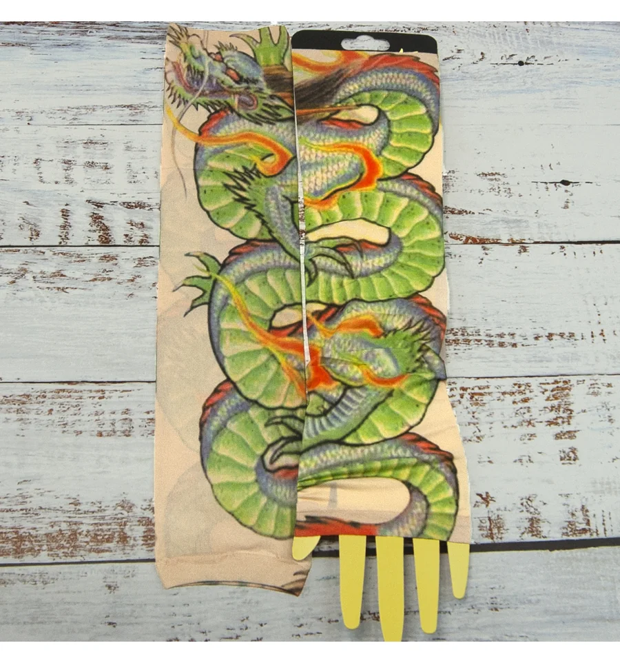 Ви мріяли про татуювання, але не могли наважитися? Бажаєте розширити асортимент Вашого магазину карнавальних аксесуарів? Тоді оптовий інтернет магазин PrazdnikShop пропонує купити нейлонові безшовні тату рукави з кольоровим малюнком. Тату рукава виготовлені з дихаючого матеріалу, за складом нагадує капрон з пористою структурою, завдяки чому шкіра під ними не потіє і не викликає подразнень. Мають універсальний розмір. Одягаються тату рукава від зап'ястя до плеча, поверх Ви можете одягати футболку або сорочку з лагідним рукавом. Знімні тату рукави реалістично виглядають на руці, створюючи враження ефектного татуювання. Рукави можна прати.