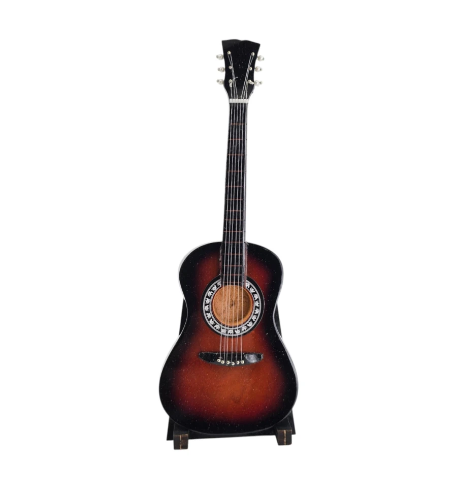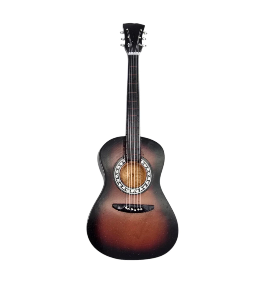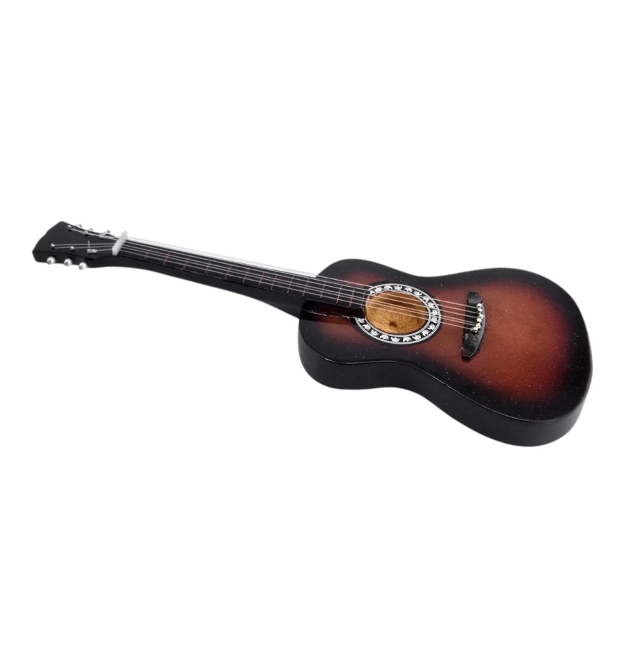 Класична декоративна міні-акустична гітара в стилі sunburst – теплий градієнт від глибокого чорного до насиченого коричневого, як у традиційних акустичних інструментів!