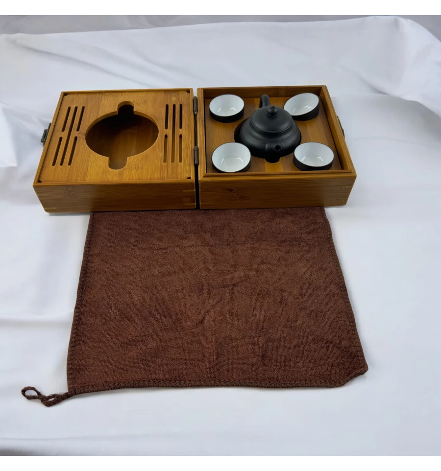 Відкрийте собі мистецтво чаювання з цим чудово оформленим чайним набором у футлярі з бамбука, який стане чудовим подарунком для цінителів чаю. Усередині футляра – традиційний чорний чайник із відповідними чашками, що створюють затишну атмосферу для спокійного чаювання.