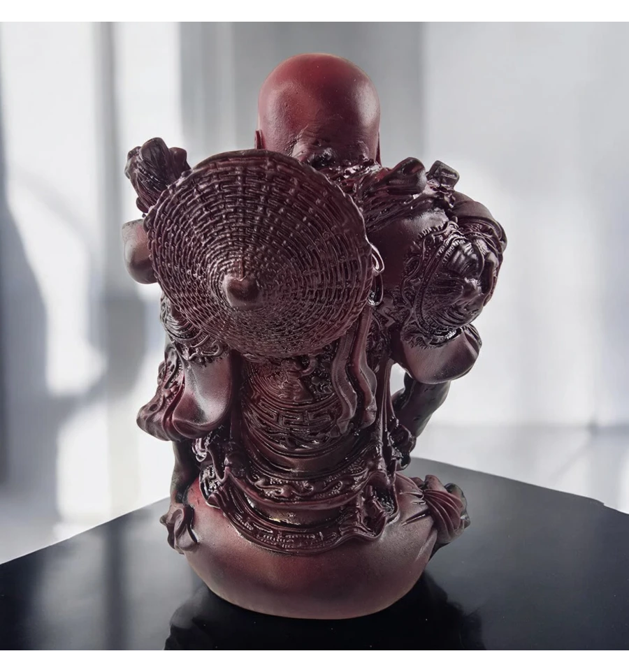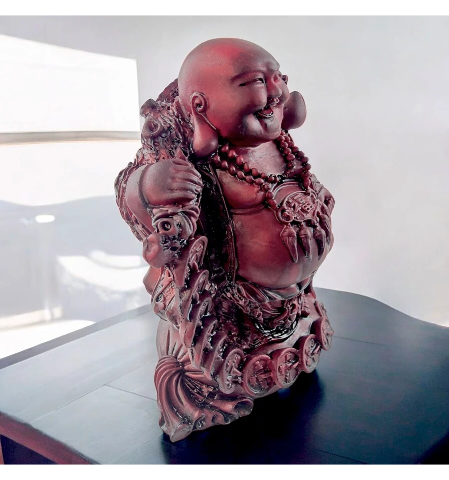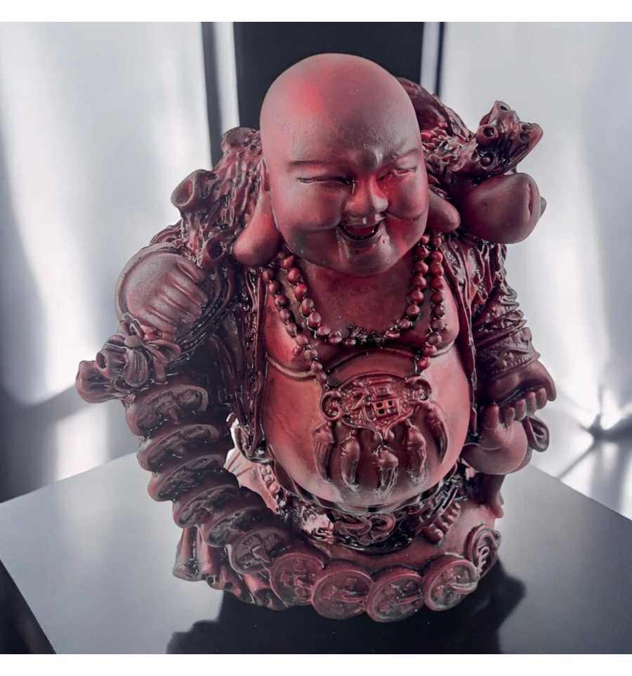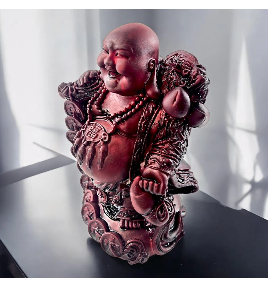 Додайте в свій будинок трохи радості та гармонії зі статуеткою Будди, що сміється (також відомого як Хотей або Будда щастя). Цей веселий Будда, з широкою посмішкою та мішком багатства, символізує удачу та процвітання. Він оточений китайськими монетами, які приносять достаток та позитивну енергію у будь-який простір. Гладка поверхня і насичений червоний відтінок надають йому вигляду старовинного різьблення, створюючи особливу атмосферу тепла і затишку. Ця статуетка стане чудовим оберегом для вашого будинку чи офісу, а також оригінальним подарунком для близьких.