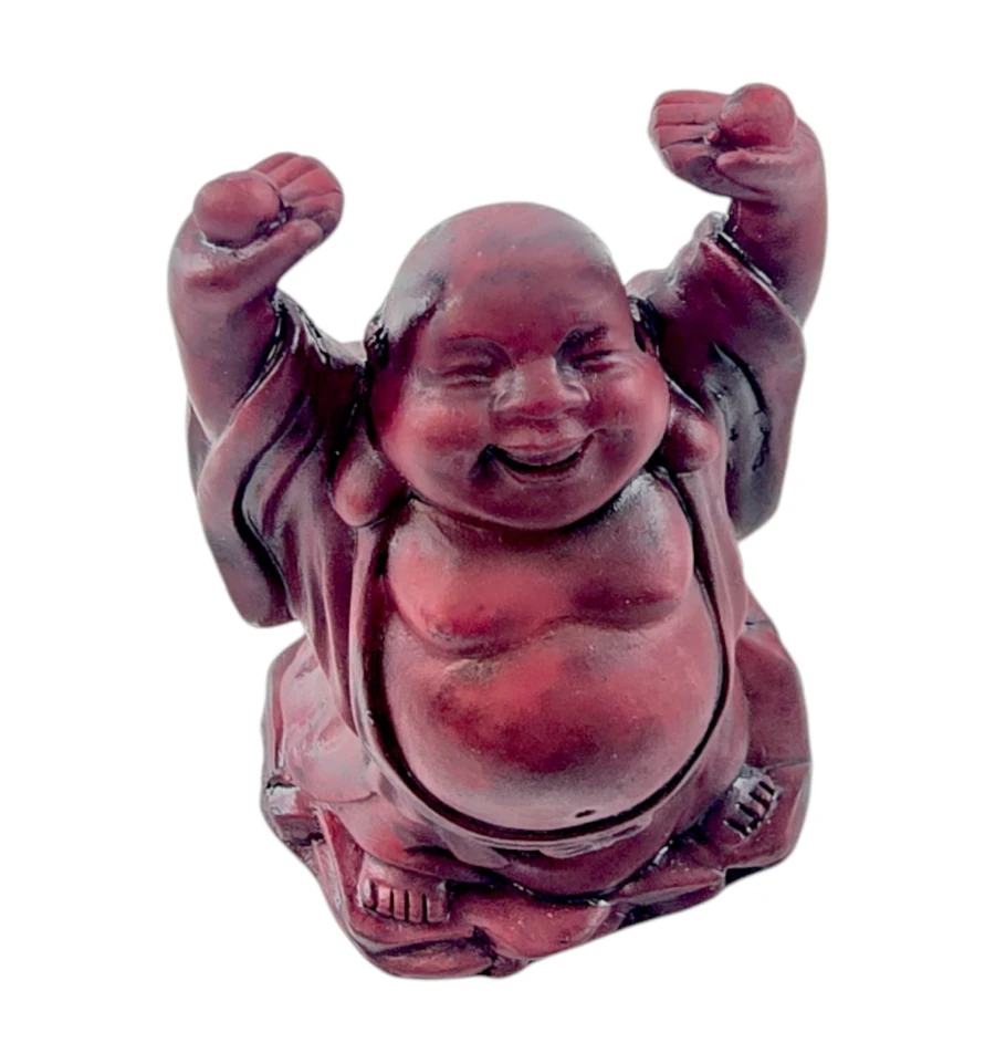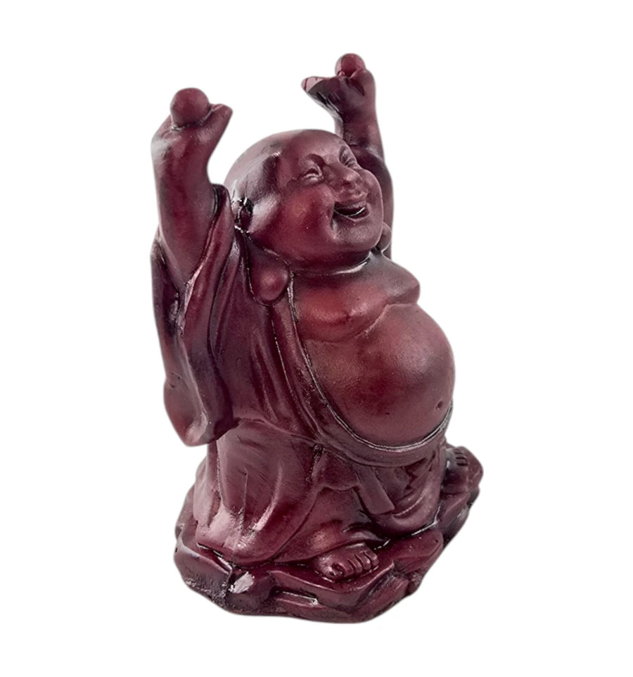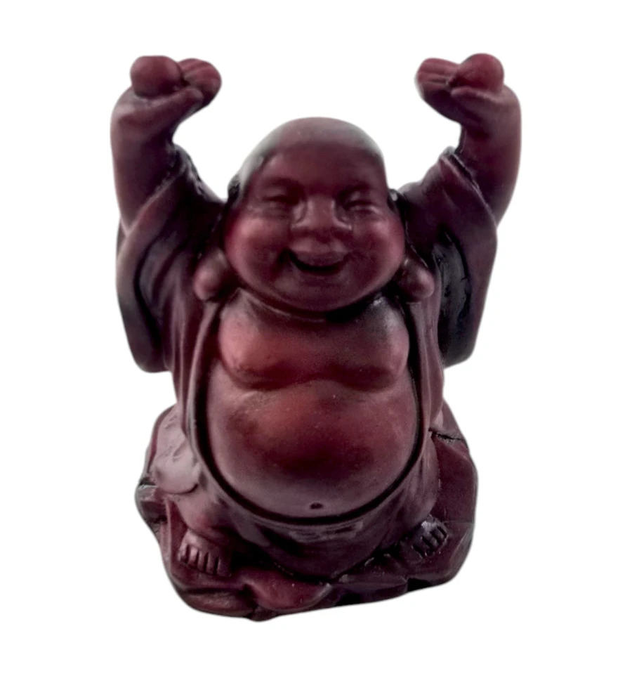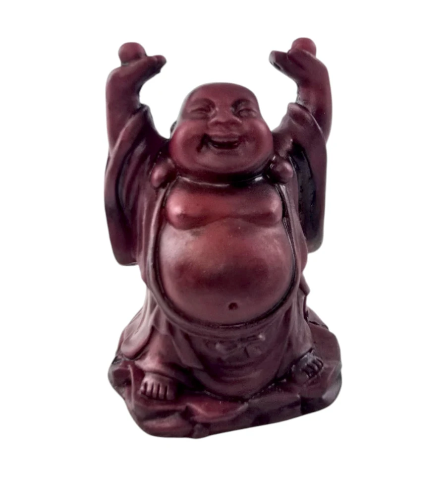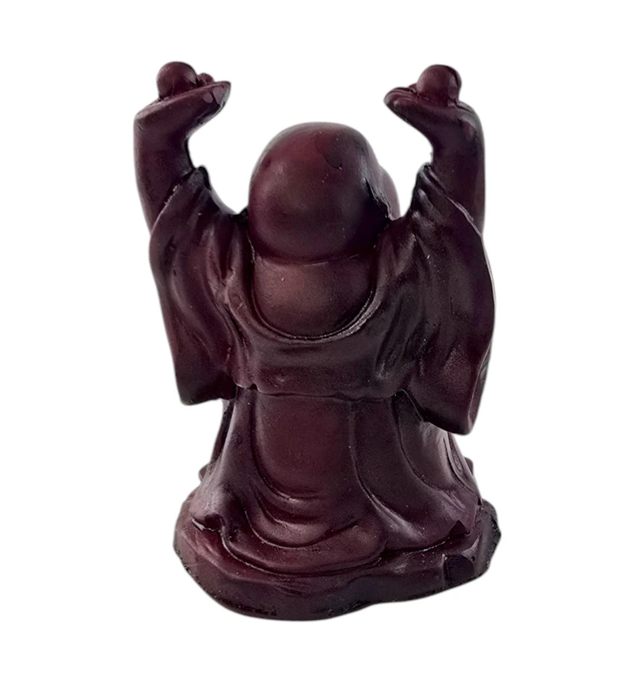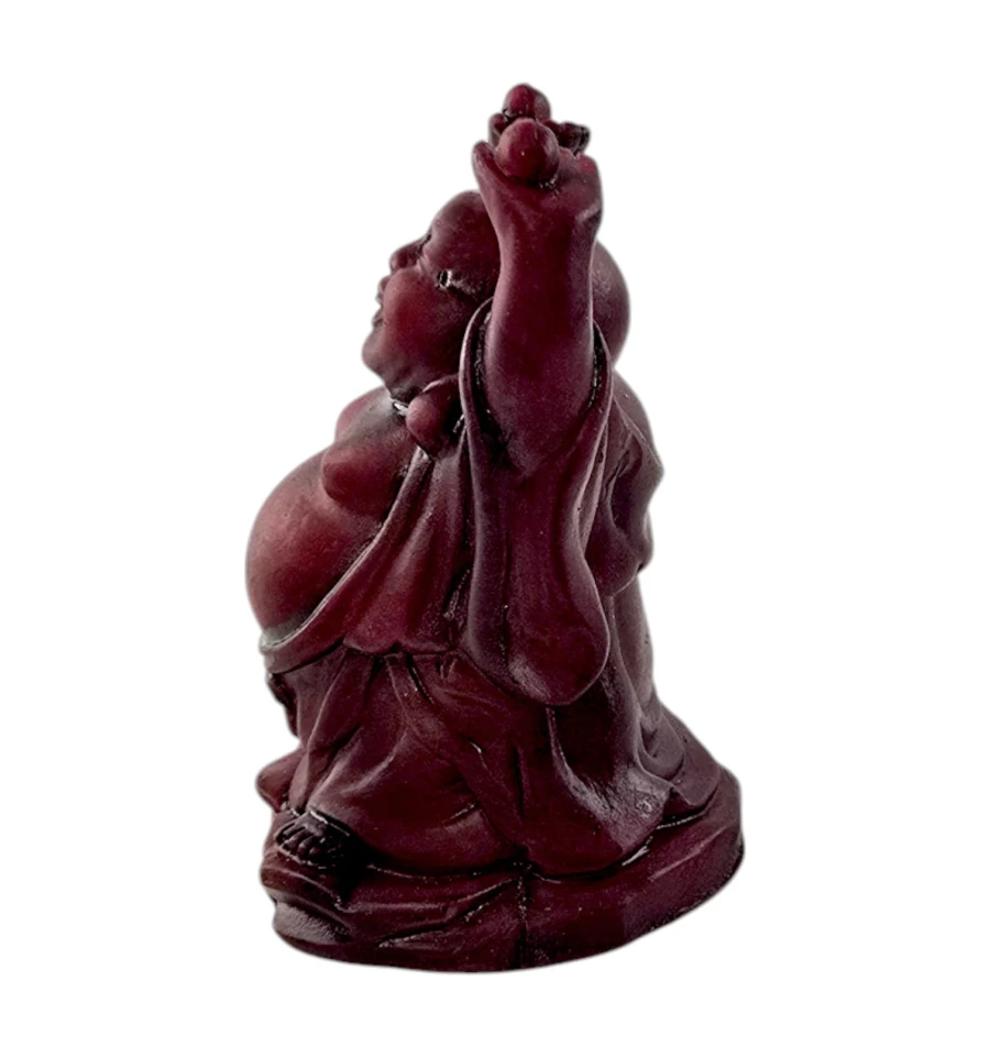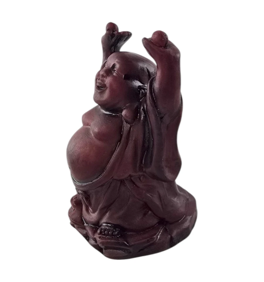 Ця статуетка Хотея, який підняв руки вгору у жесті радості та благословення, символізує щастя, достаток та гармонію. Виготовлена з полімеру в Китаї, вона має висоту 9 см, ширину 6,2 см і глибину 5,7 см. Колір статуетки - насичений коричнево-бордовий, який підкреслює традиційний стиль Хотея і надає особливої елегантності.