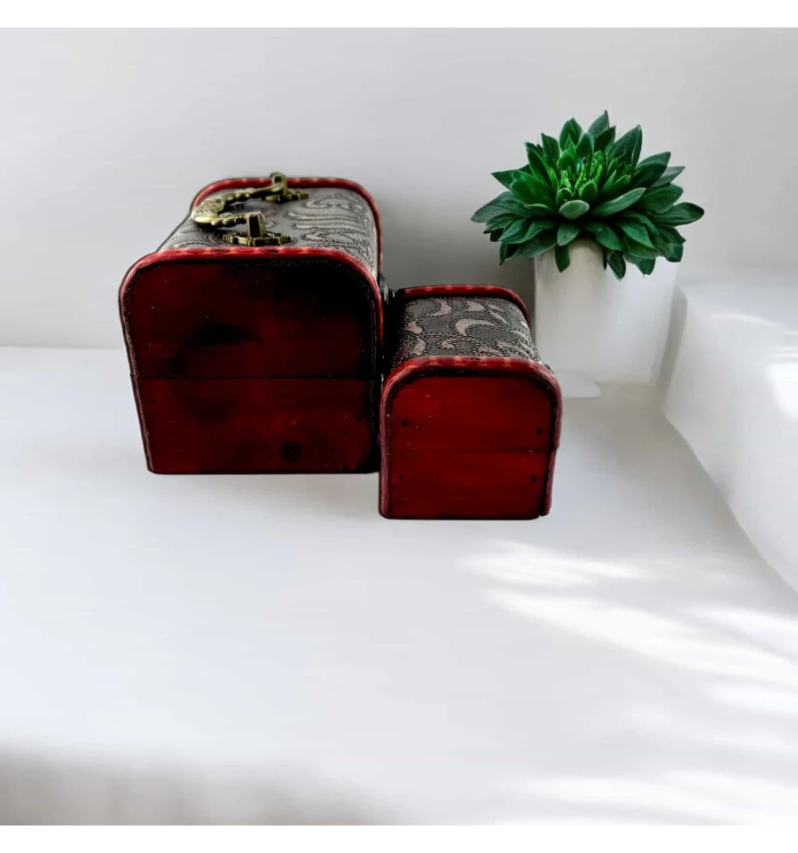 Відкрийте для себе вишуканий набір із двох скриньок у класичному стилі, який стане прикрасою вашого інтер'єру та чудовим місцем для зберігання цінних дрібниць. Ці скриньки, виготовлені в Китаї, поєднують у собі вінтажну естетику та функціональність, підійдуть для зберігання прикрас, пам'ятних речей або невеликих аксесуарів.