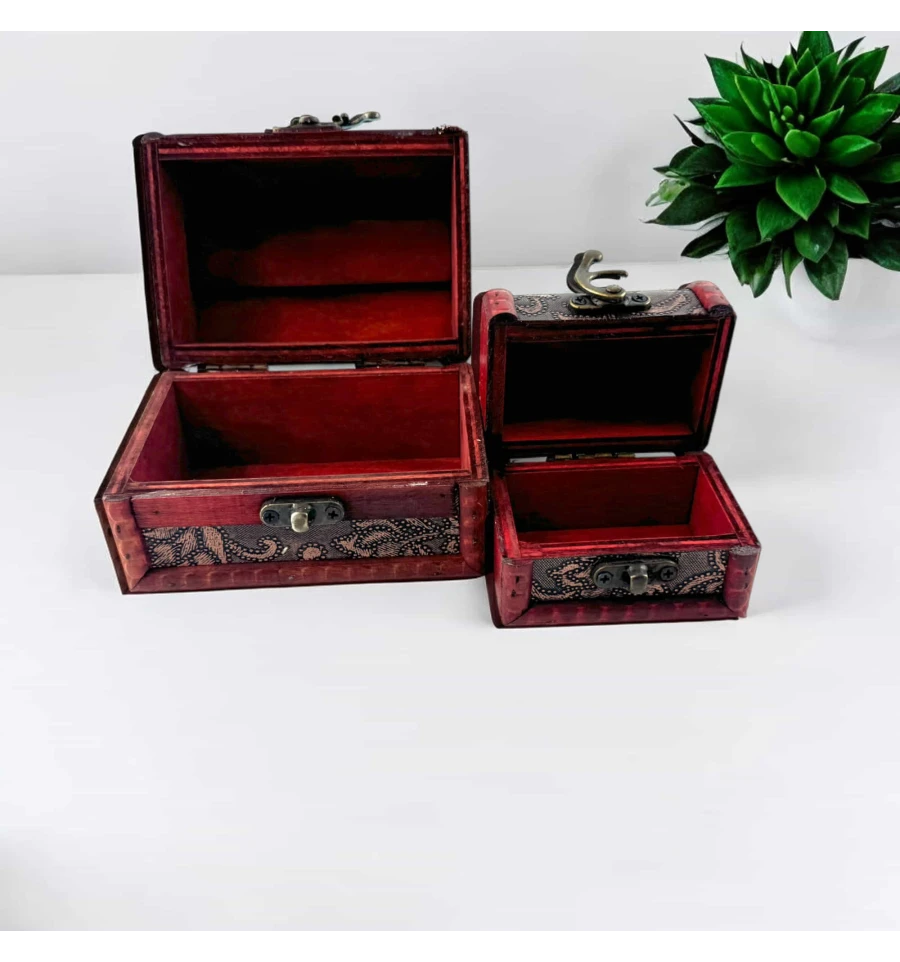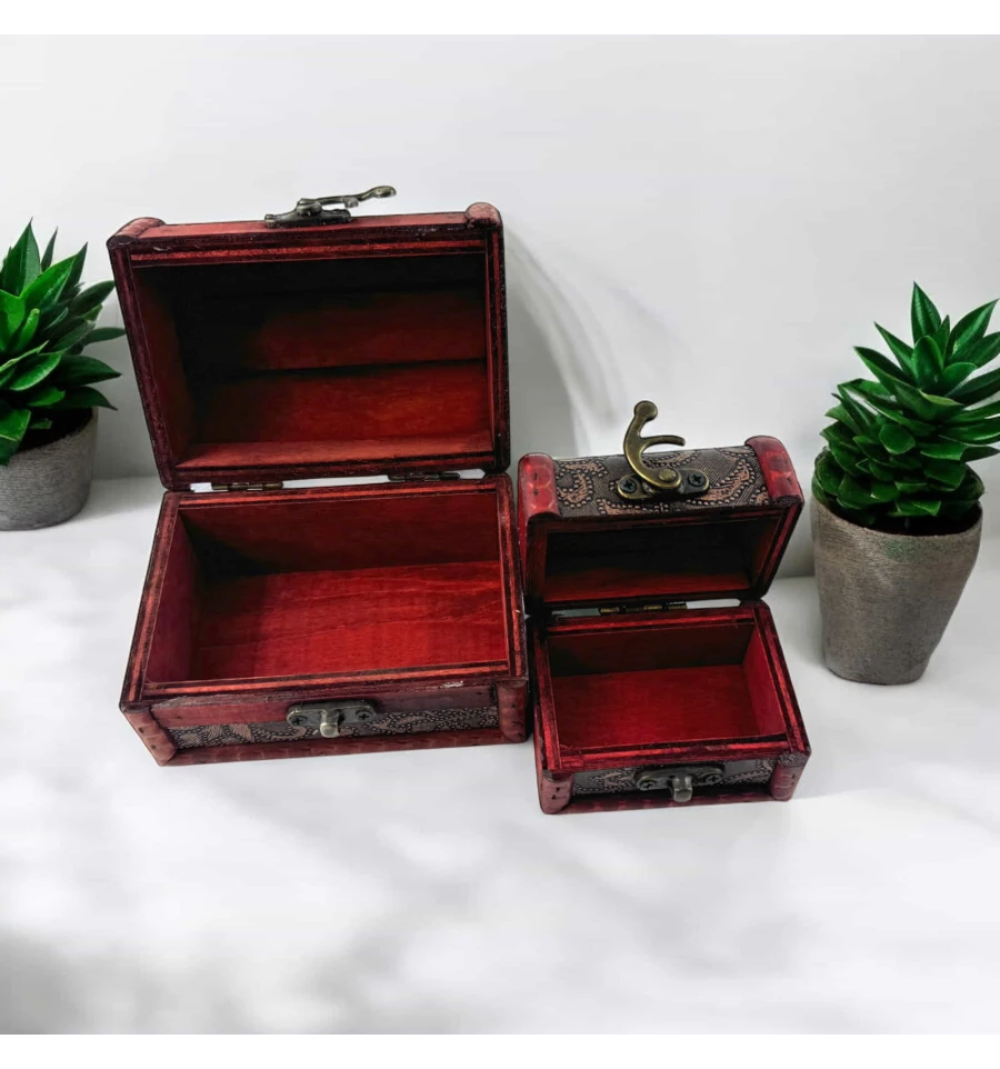 Ці скриньки виконані з дерева з вишуканим декором, що надає виробам особливої елегантності. Вони оснащені надійними застібками, завдяки чому їх вміст завжди буде у безпеці. Зручні розміри дозволяють використовувати їх як для зберігання будинку, так і як декоративні елементи. Дизайн у стилі ретро та різьблені вставки додають скринькам особливого шарму.
