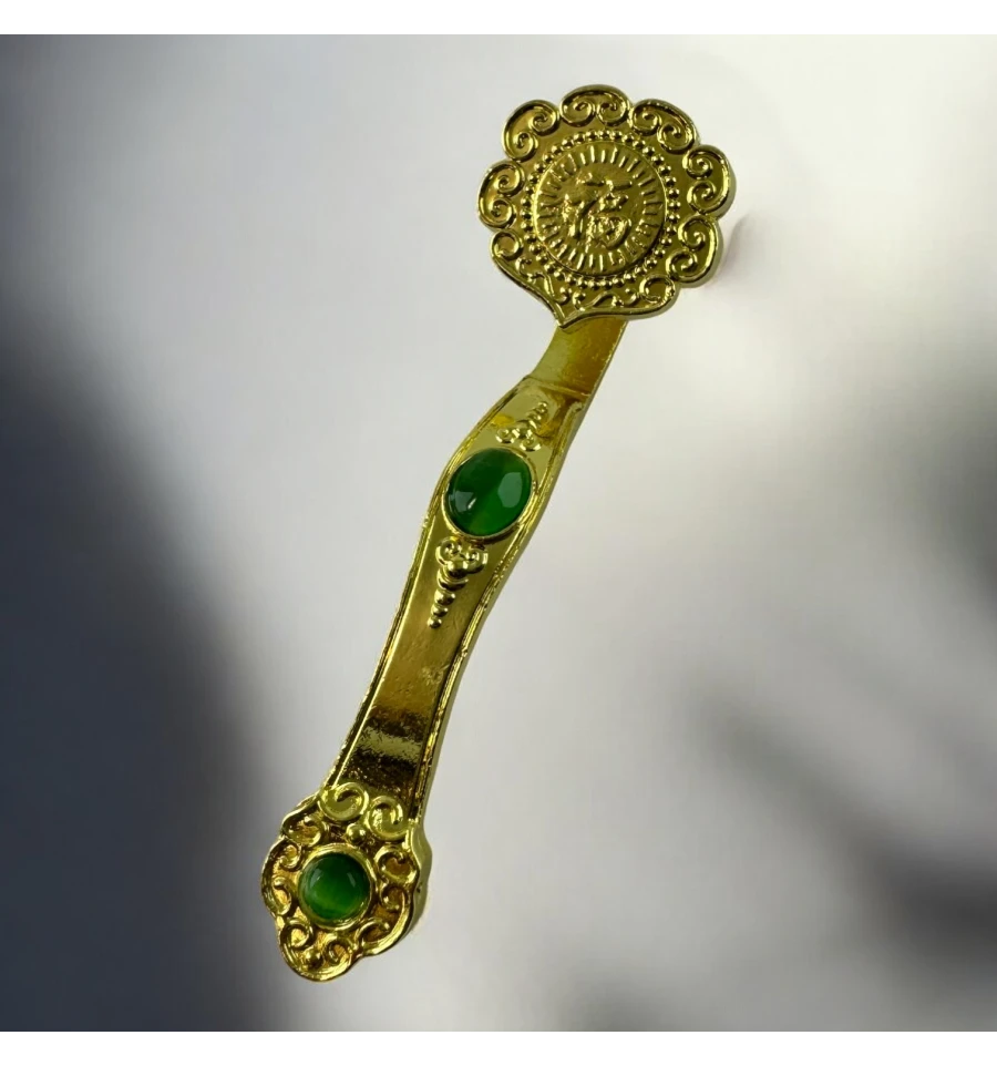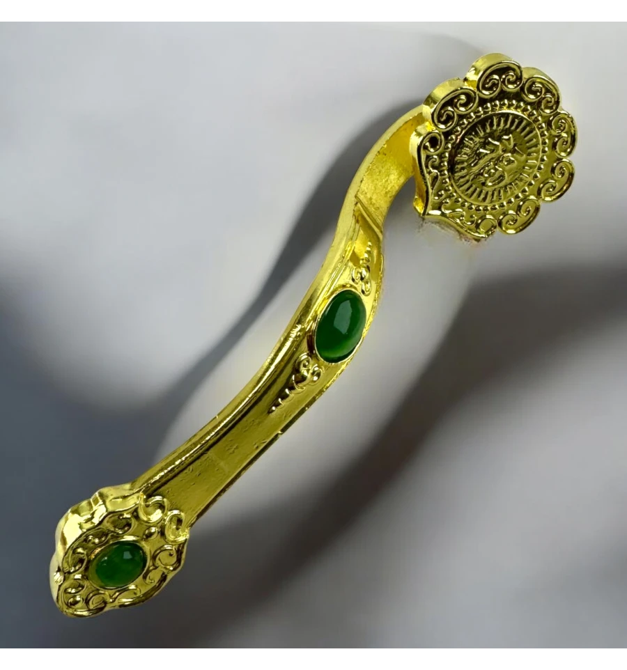 Пориньте у світ магії та загадковості з цим елегантним магічним жезлом. Витончено вигнута форма та вишукані орнаменти надають жезлу особливу розкіш, а яскраві смарагдові вставки створюють відчуття магічної сили, ніби накопиченої у кожному камені. Жезл виконаний із міцного металу із золотистим покриттям, що додає йому додатковий блиск та шарм. Ідеальний вибір для ритуалів, тематичних заходів або як колекційний предмет, здатний стати яскравим акцентом у будь-якій обстановці.