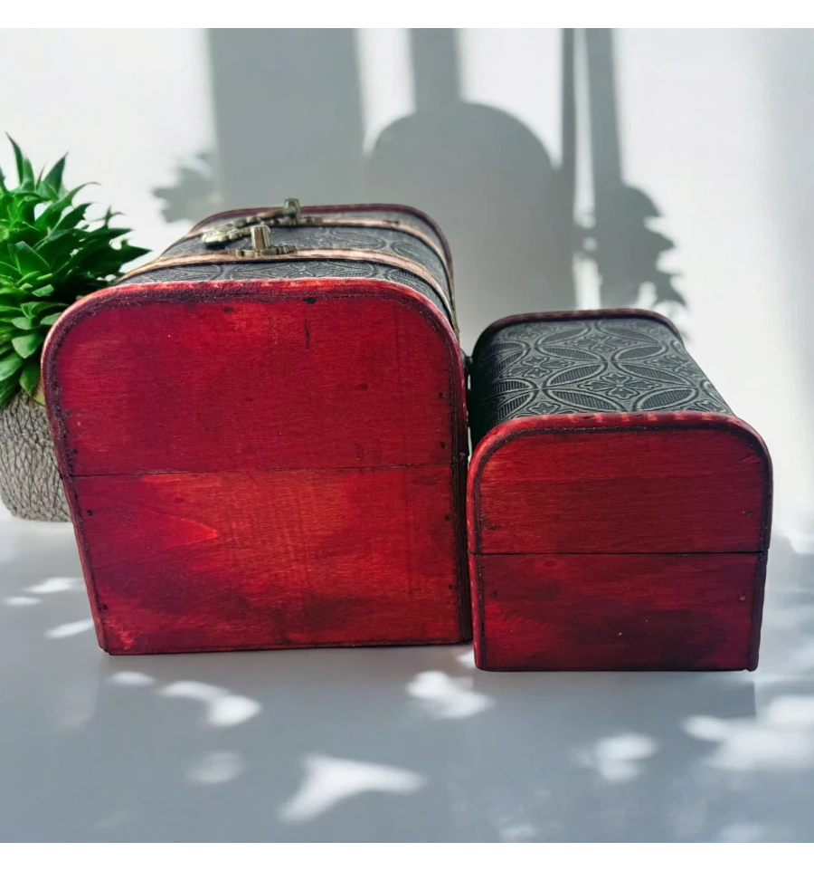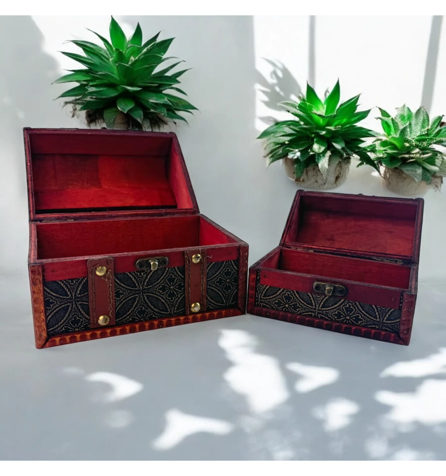 Відкрийте для себе вишуканий набір із двох скриньок у класичному стилі, який стане прикрасою вашого інтер'єру та чудовим місцем для зберігання цінних дрібниць. Ці скриньки, виготовлені в Китаї, поєднують у собі вінтажну естетику та функціональність, підійдуть для зберігання прикрас, пам'ятних речей або невеликих аксесуарів.