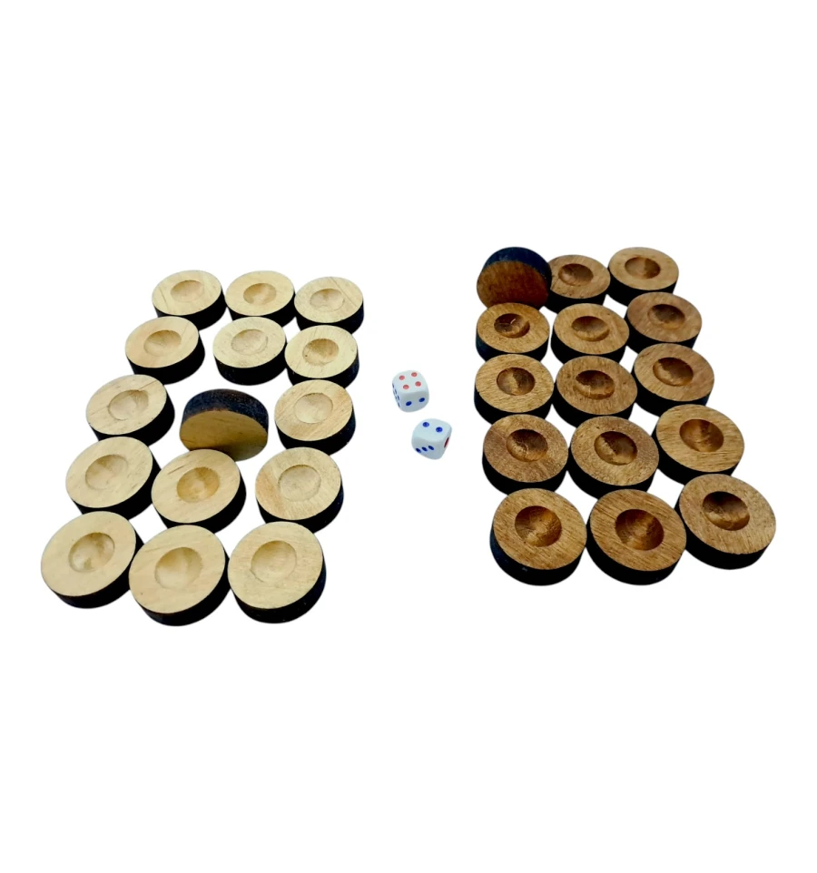 Набір фішок для нард виготовлений з масиву дерева, що надає їм природну теплоту і приємну текстуру. що робить його готовим до використання одразу після придбання.