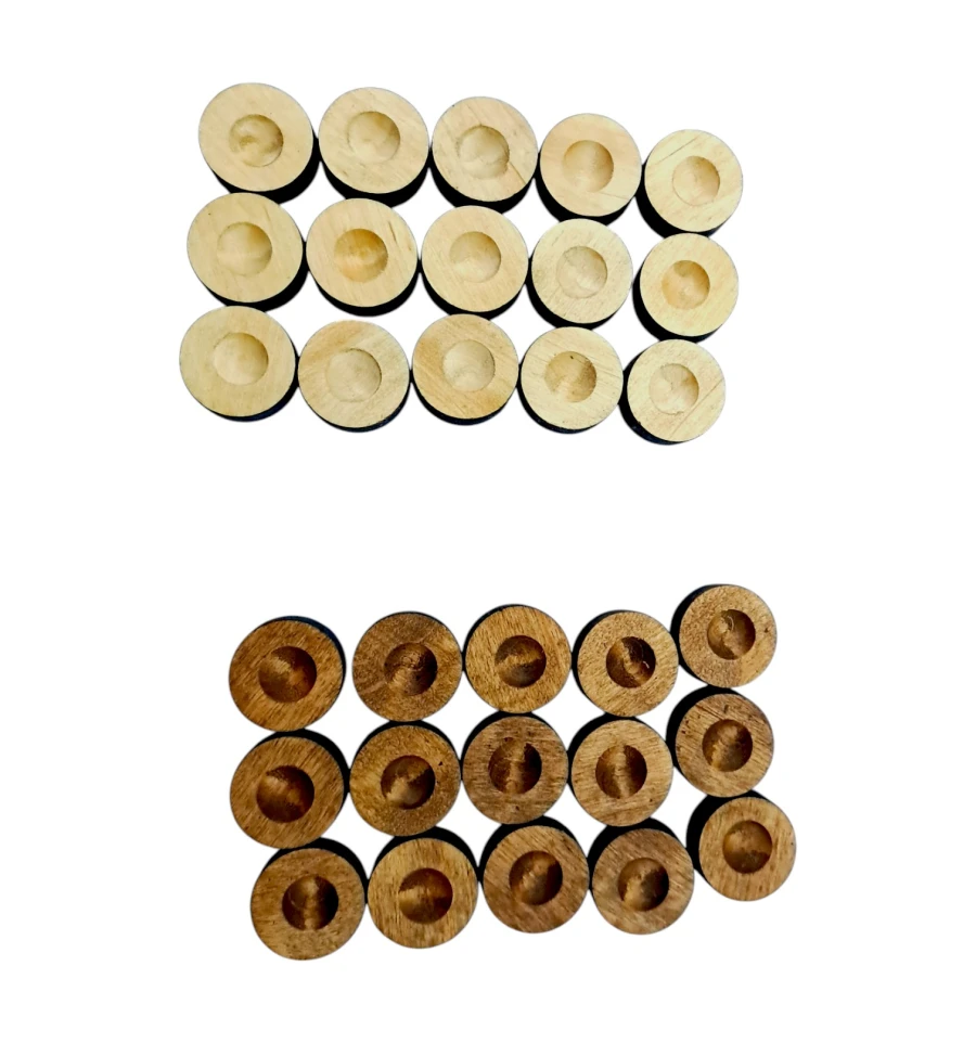 Фішки виконані з якісного дерева, що забезпечує довговічність та приємні тактильні відчуття при грі. Деревина оброблена та відполірована до гладкості, зберігаючи при цьому природну текстуру.