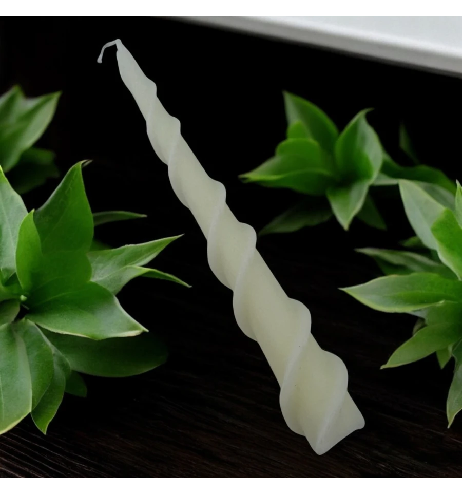 Набір з двох білих свічок з унікальною кручена форма. Ці свічки створять м'яке та рівне освітлення, додаючи елегантності будь-якому простору. Ідеальні для спокійних вечорів, медитацій чи створення затишної атмосфери в будинку. Завдяки своєму витонченому дизайну вони стануть стильним декоративним елементом, який підкреслить вашу індивідуальність та привнесе нотку магії до інтер'єру.