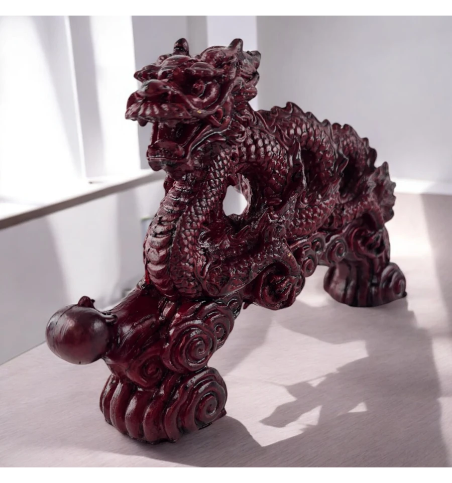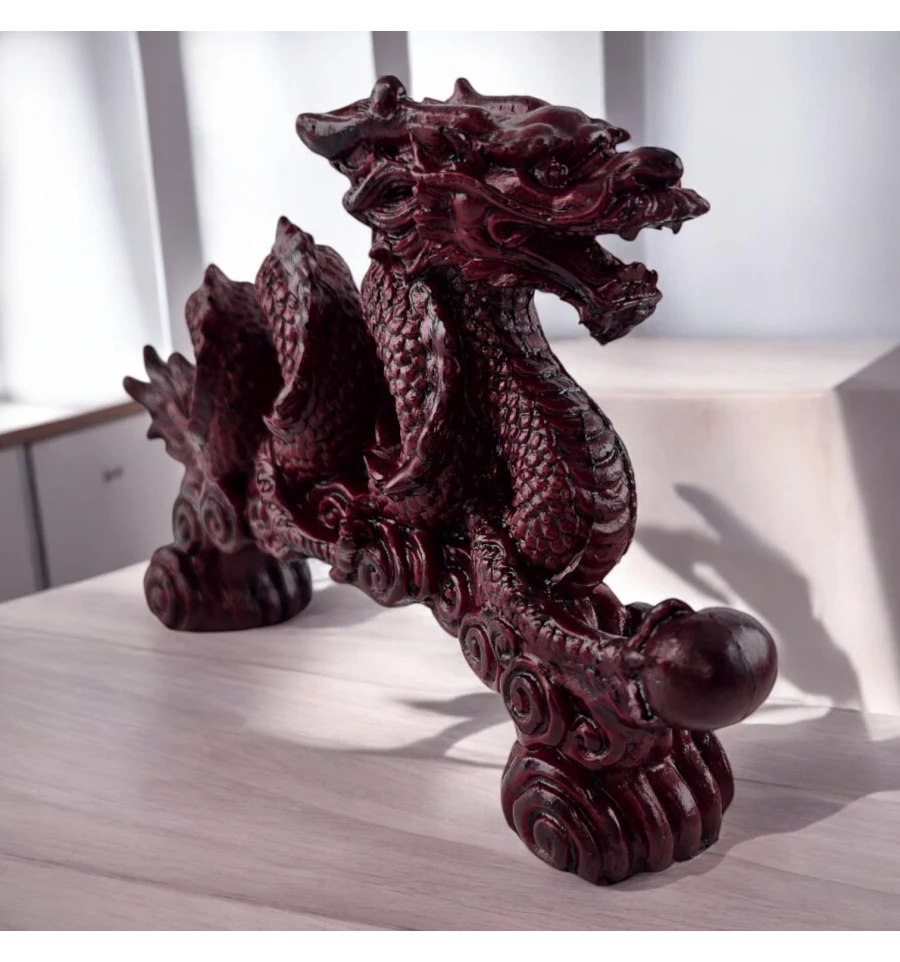 Дракон, зображений на цій фігурці, уособлює захист і удачу. Він тримає перлину, що символізує мудрість і світло, що додає статуетці ще більше глибини та сенсу. свій інтер'єр трохи містики та чаклунства.