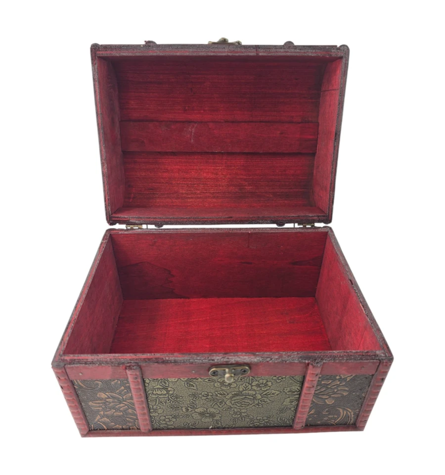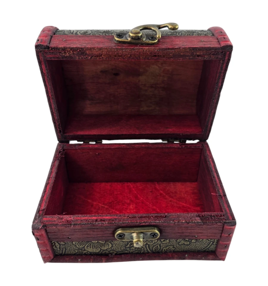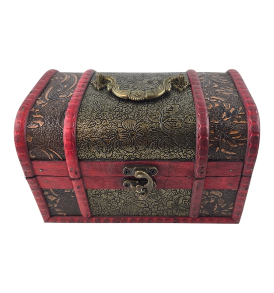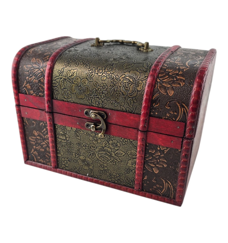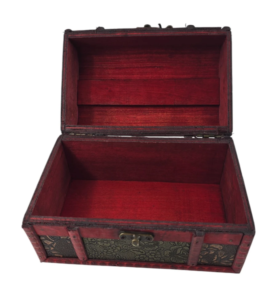 Набір із трьох скриньок "Тріада Тайн" - це не тільки чудовий елемент декору, а й практичне рішення для зберігання ваших скарбів. Кожна скринька виконана з дерева з майстерним декоративним оздобленням, яка надає виробу вінтажного та вишуканого вигляду. Візерунковий малюнок і глибокий червоний відтінок створюють атмосферу таємниці та розкоші. Скриньки ідеально підходять для зберігання прикрас, листів, пам'ятних сувенірів та інших дорогих серцю речей. Цей набір додасть нотку витонченості вашому інтер'єру та підкреслить ваш смак.