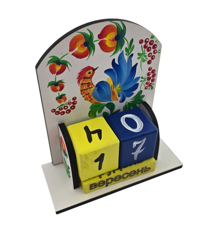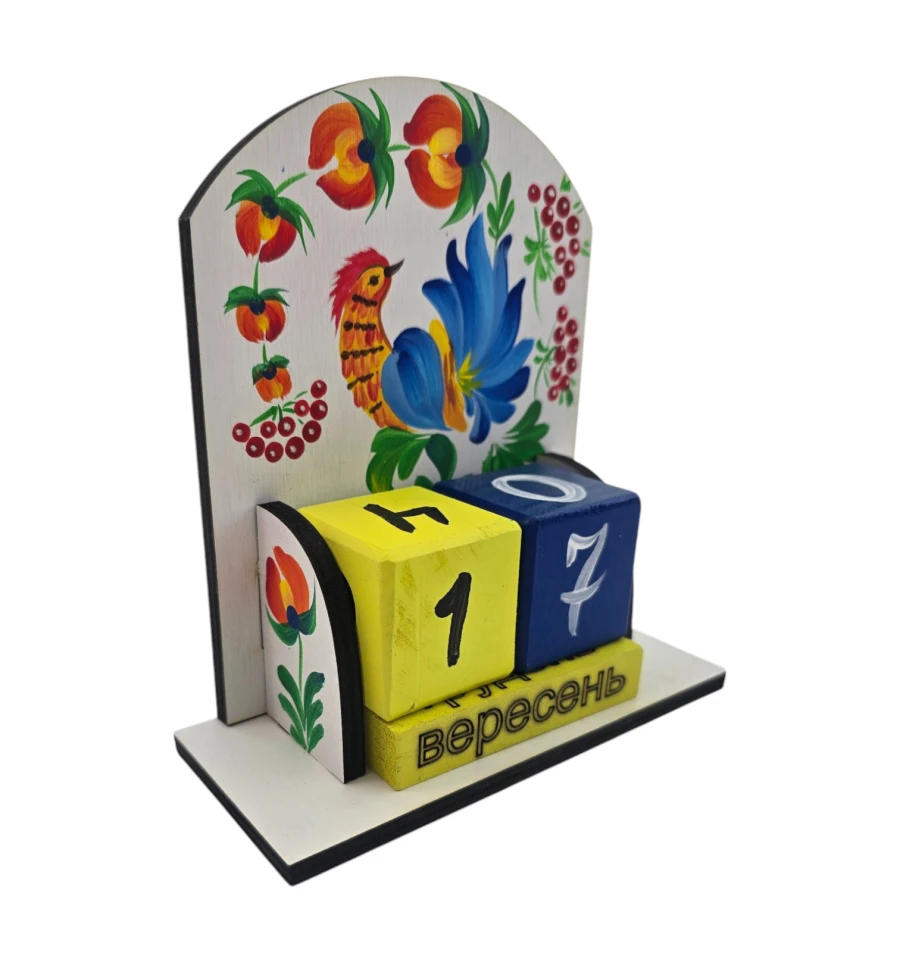 Вічний календар в українському стилі із зображенням птиці Незалежності - це настільний