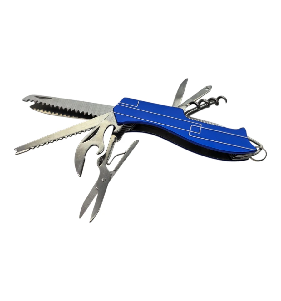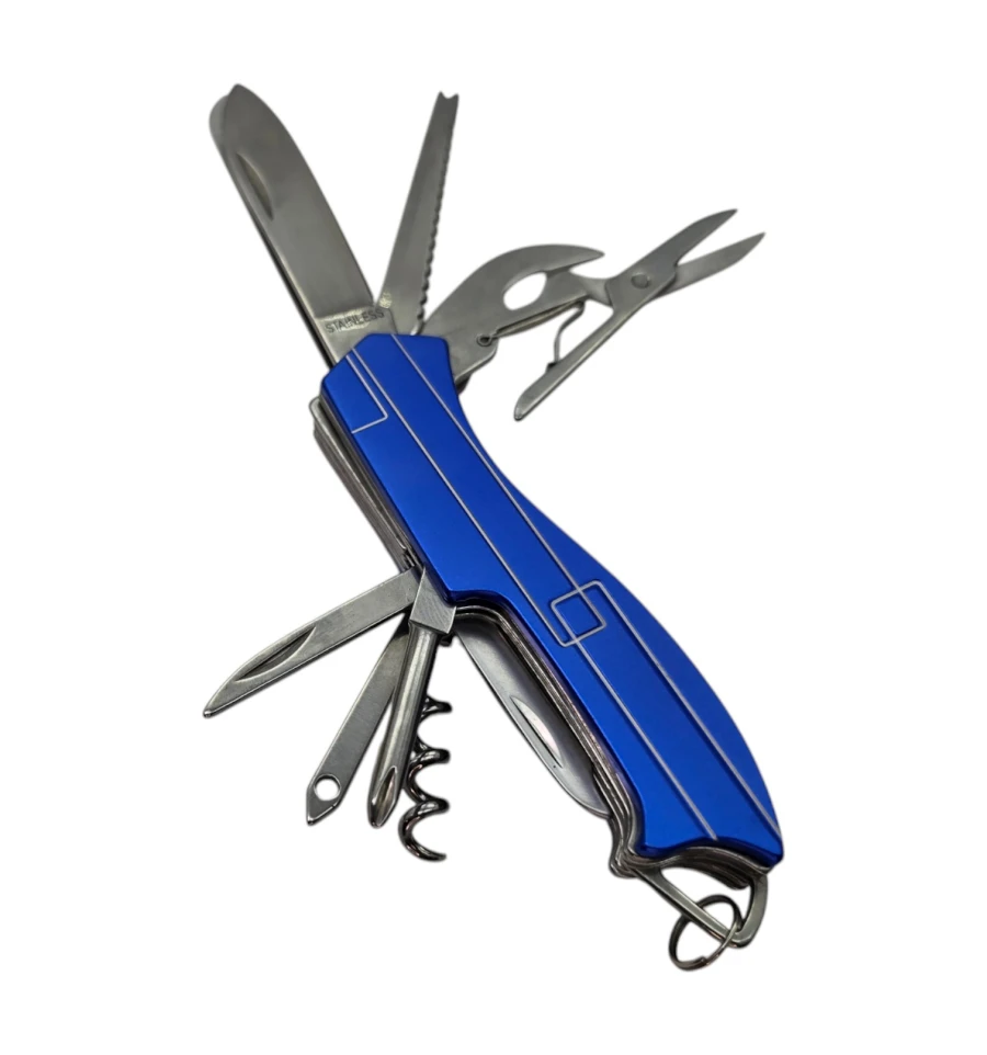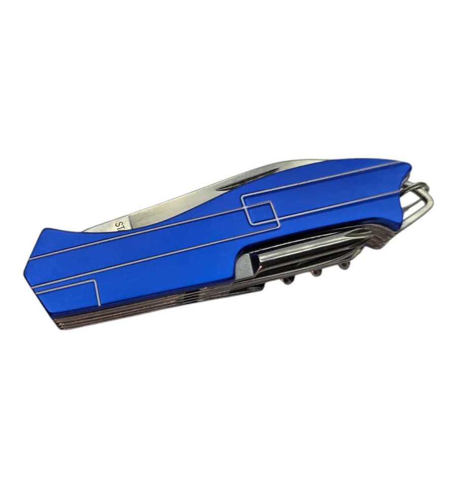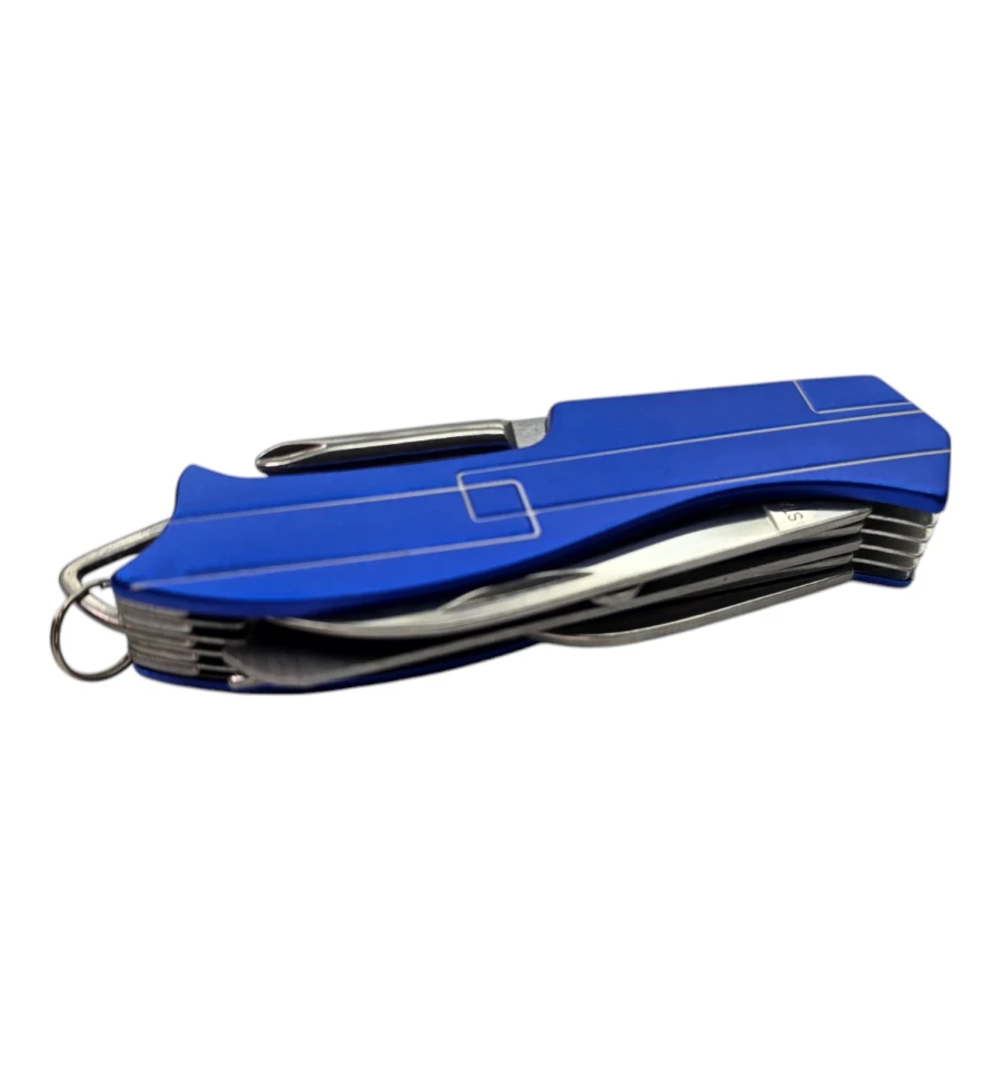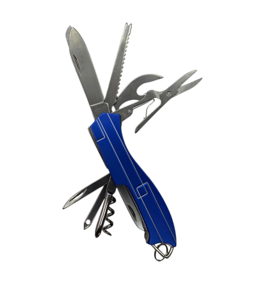 Опис: Компактний та багатофункціональний мультитул-ніж стане надійним помічником у будь-якій ситуації – від туристичного походу до дрібних побутових ремонтів. Зручний розмір дозволяє легко носити його в кишені або прикріпити до ключів завдяки кільцю. Нержавіюча сталь забезпечує міцність та довговічність інструментів, а пластиковий корпус робить конструкцію легкою.
