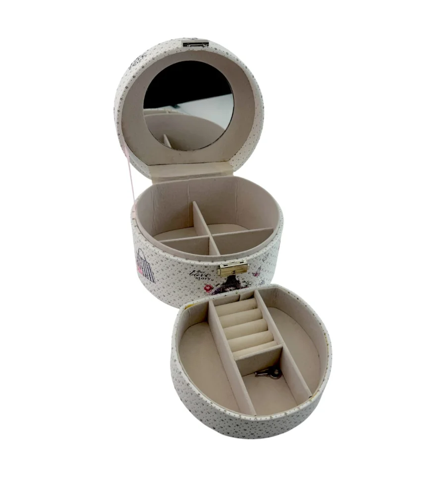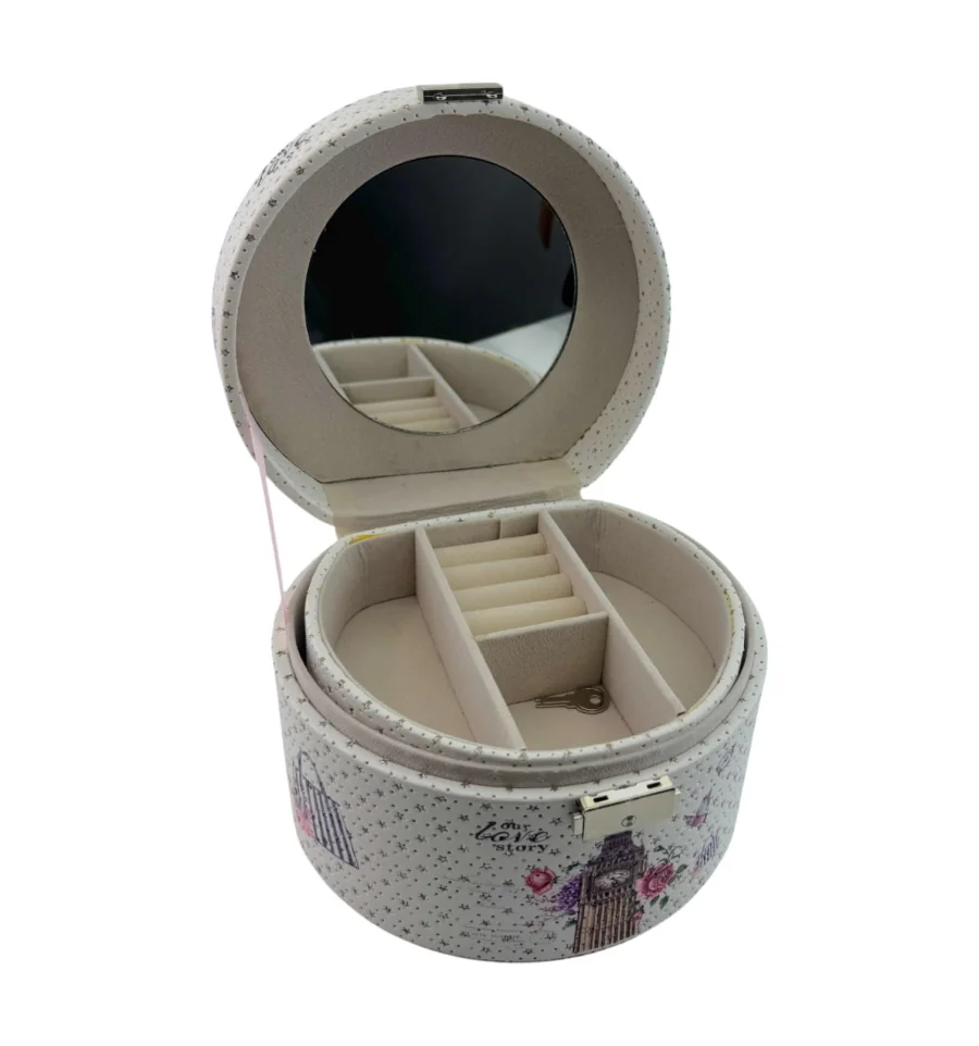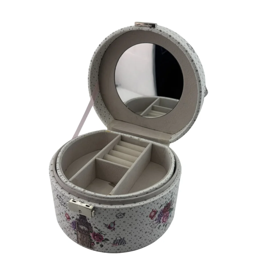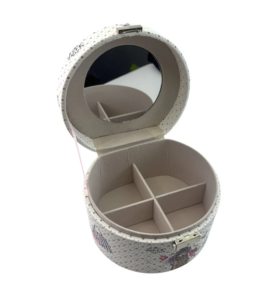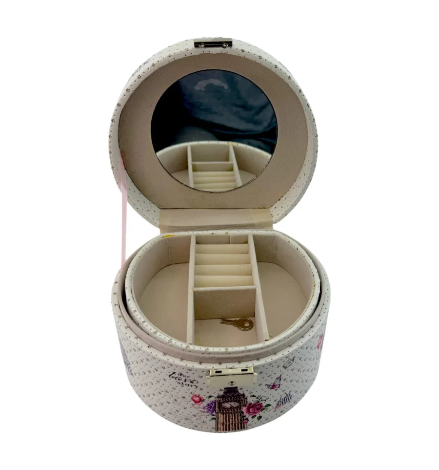 Усередині – продумана система зберігання: розсувні секції дозволяють акуратно розмістити кільця, сережки, браслети та інші аксесуари. Завдяки зручній ручці та компактним розмірам скринька ідеально підійде як для дому, так і для подорожей.