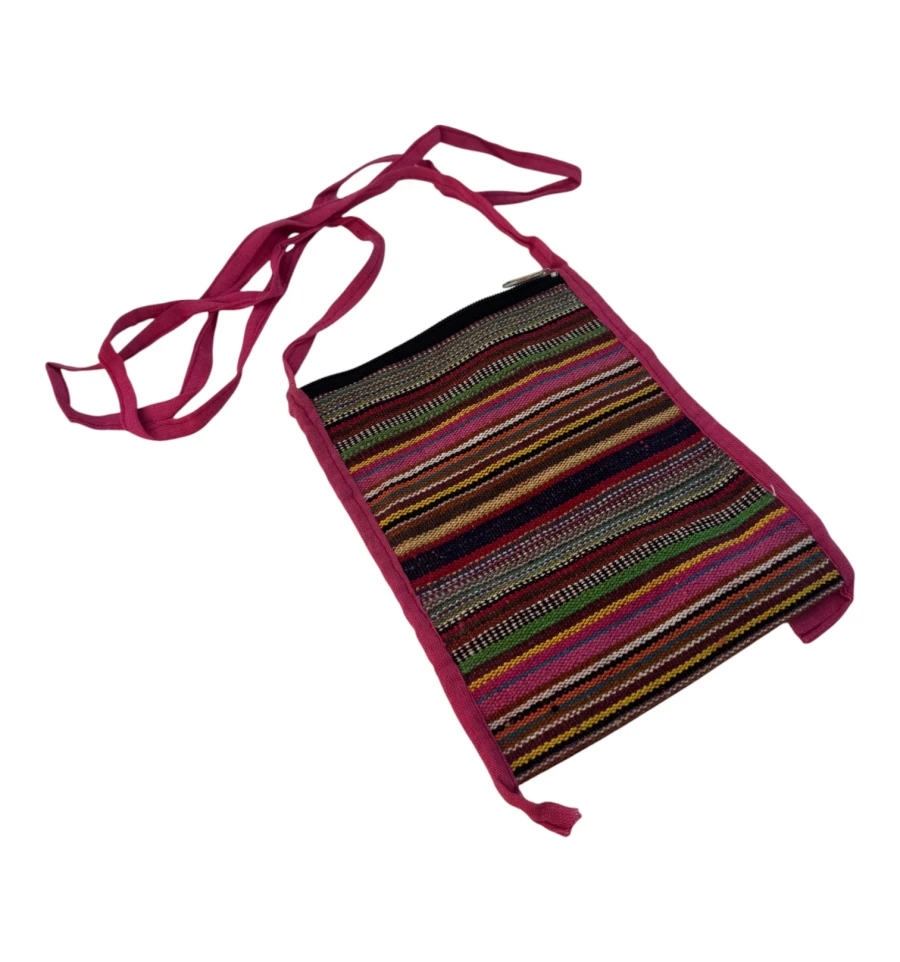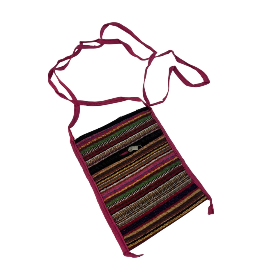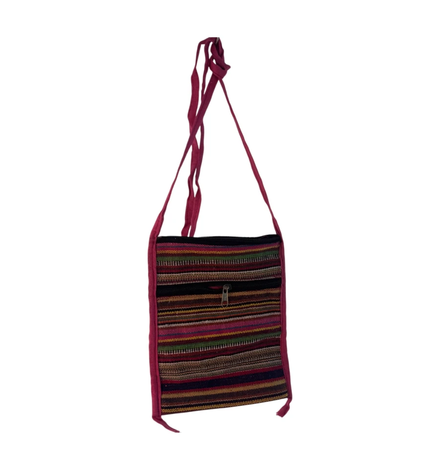 Яркая и лёгкая сумочка в этническом стиле — отличный аксессуар на каждый день или для путешествий. Сделана в Индии, украшена цветными горизонтальными полосами, мягкая на ощупь и удобная в носке. Основной отдел застёгивается на молнию, внешний карман , так же на молнии, поможет держать под рукой мелочи. Компактный размер позволяет носить её через плечо или как кроссбоди.