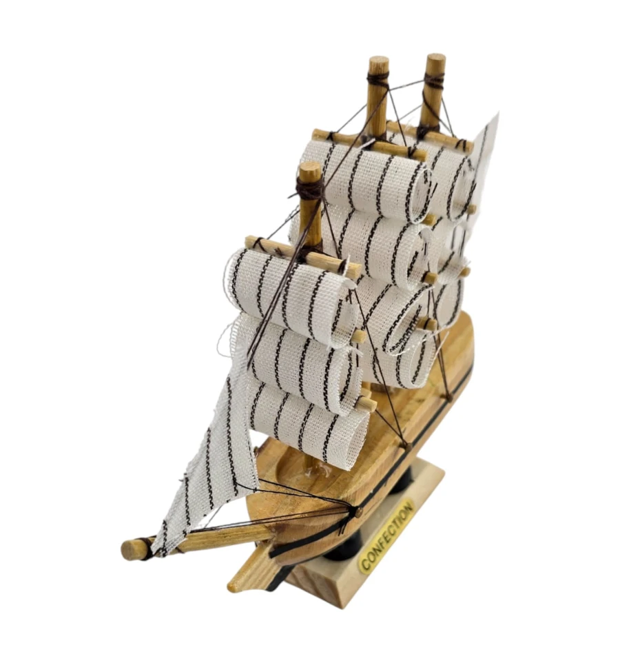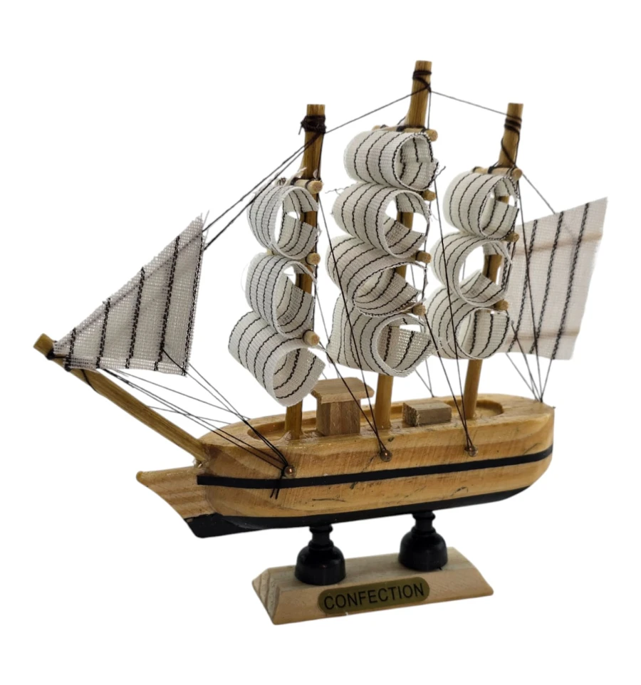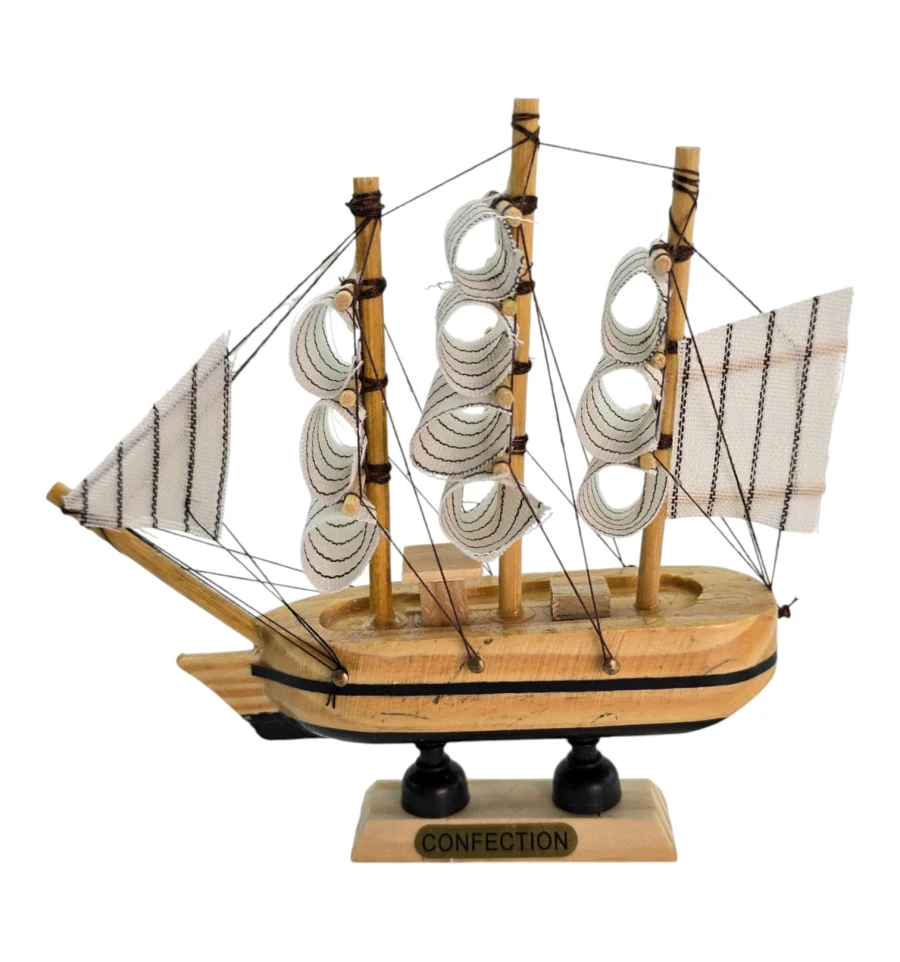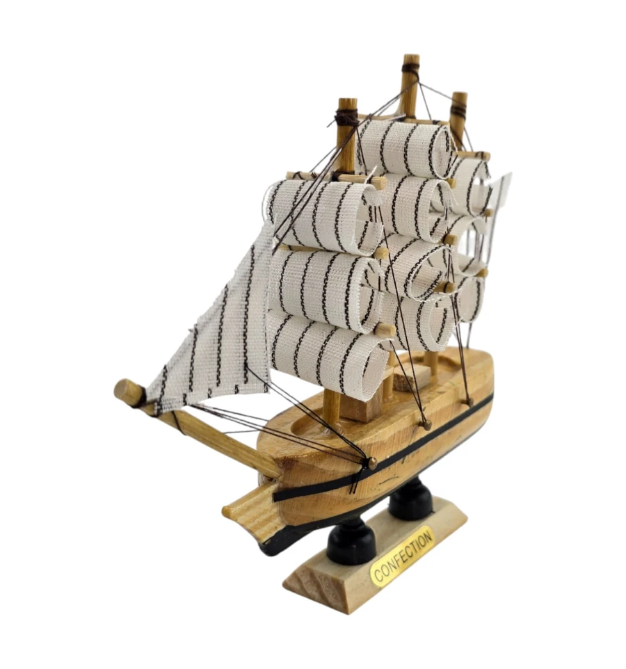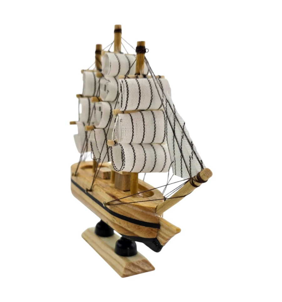 Мініатюрний корабель з дерева та тканини стильний акцент для будинку або офісу. У традиції фен-шуй вітрильник символізує подорожі, успіх та «приплив» достатку. Статуетку ставлять на полицю, стіл, камін або до кабінету, розгортаючи носом у кімнату, щоб «впускати» удачу та нові можливості. Відмінний подарунок мандрівникові, моряку, колезі та всім любителям морської теми.