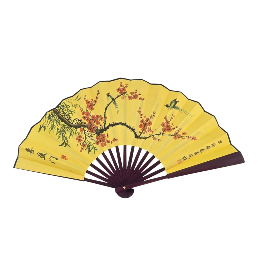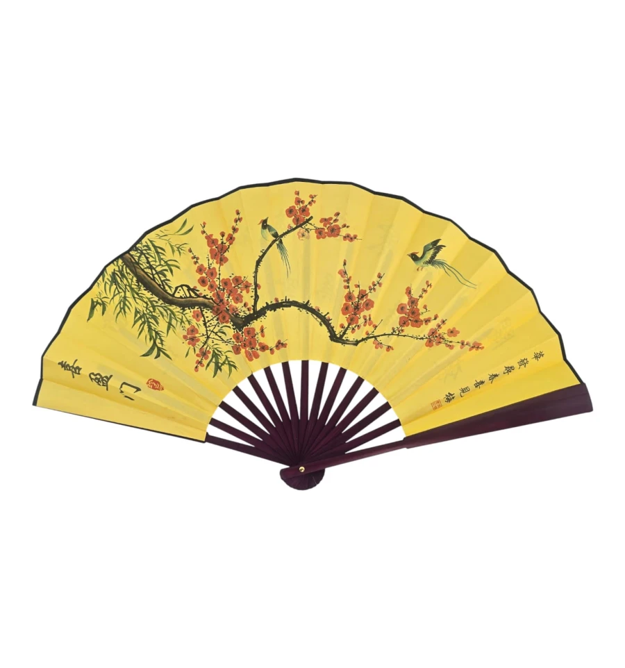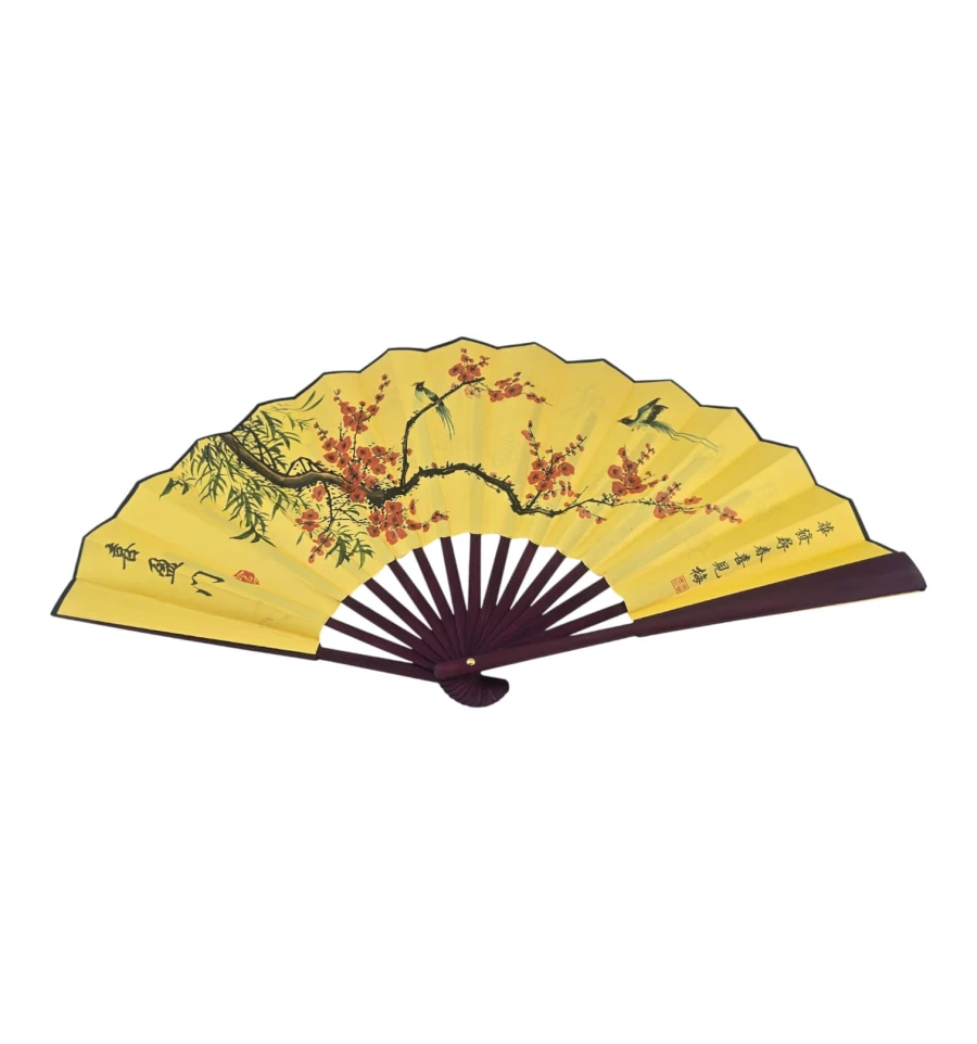 віяло шовкове, віяло бамбукове, китайське віяло, настінний декор, віяло для танців, віяло складне, жовте віяло