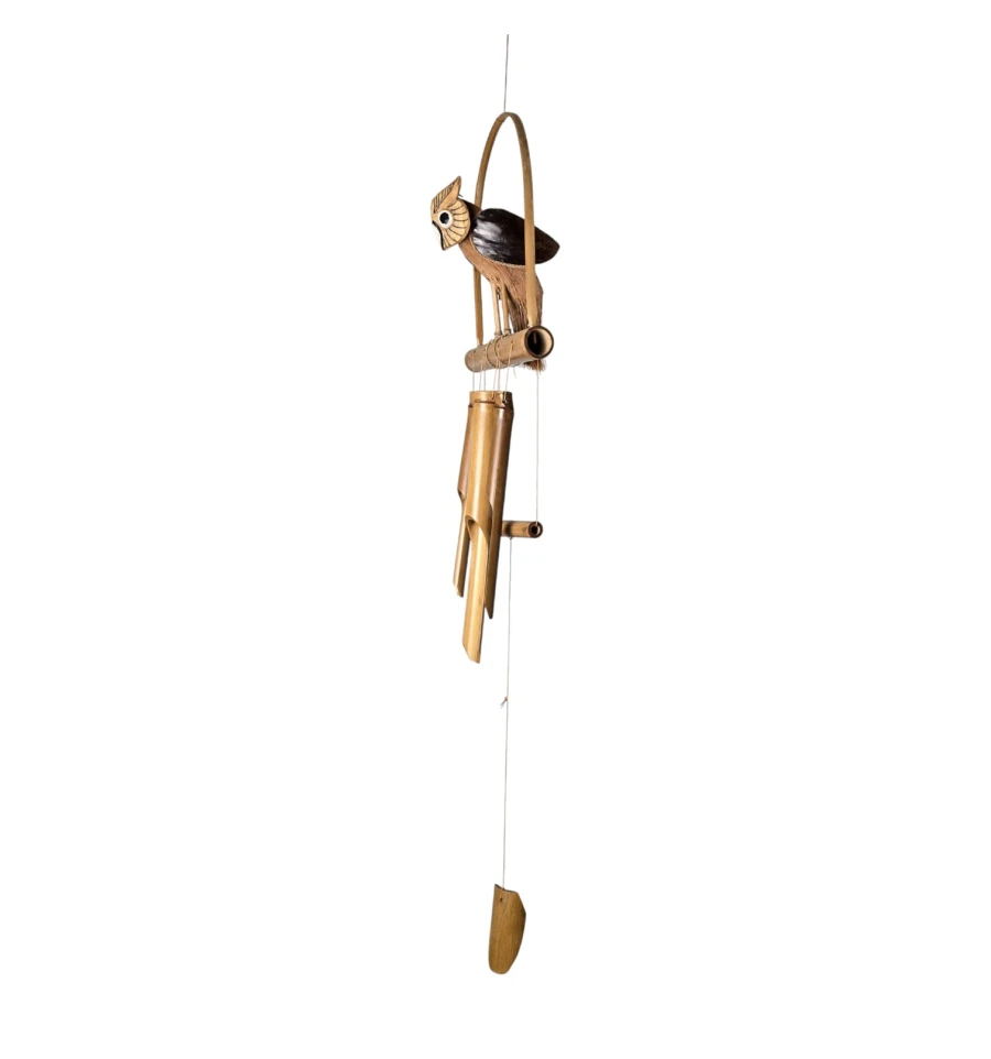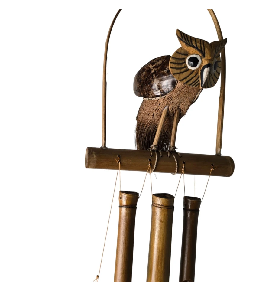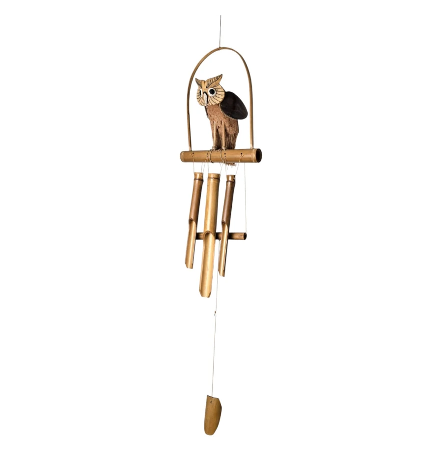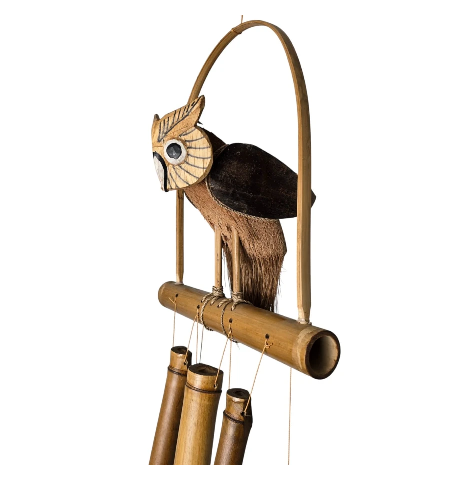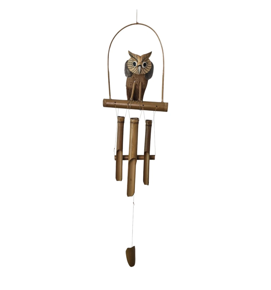 музика вітру, бамбукові дзвіночки, сова декор, підвісний декор, декор балкона, декор тераси, садовий декор, фен шуй дзвіночок, натуральний бамбук, індонезія ручна робота, подарунок для дому