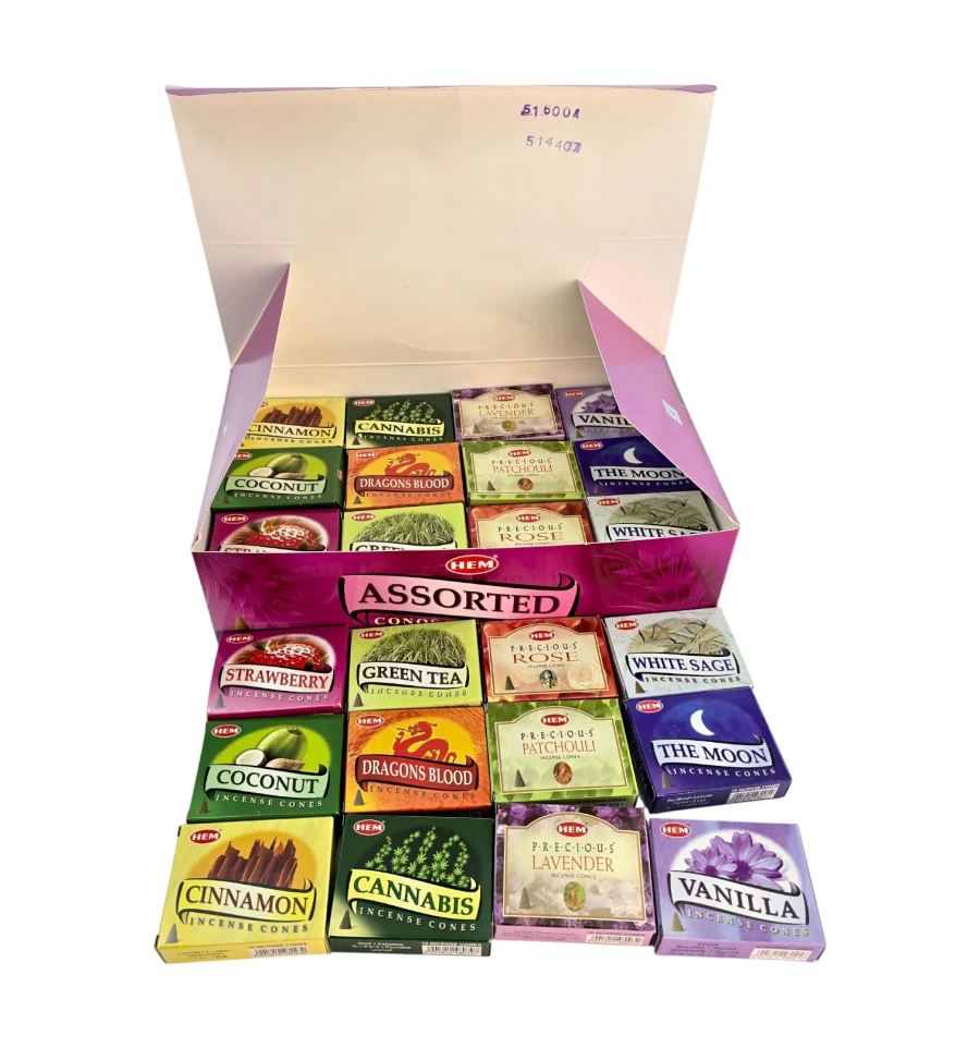 аромаконуси, конусні пахощі, hem, набір пахощів, аромат для дому, індійські пахощі, аромати assorted, біла шавлія, кориця, ваніль, пачулі, кров дракона, зелений чай, конуси пахощів
