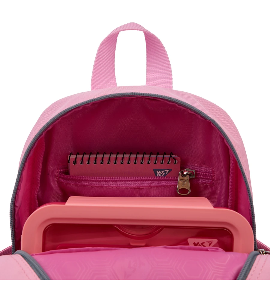 Дитячий рюкзак K-34 від бренду Yes має одне основне відділення на блискавці, передню кишеню та дві бокові кишені. Всередині дитячого рюкзачка K-34 від бренду Yes передбачено дві додаткових відкритих кишеньки та одна кишенька на блискавці. Така організація внутрішнього простору допоможе розмістити речі необхідні у дитячому садочку та навіть для відвідування підготовчих занять до школи.