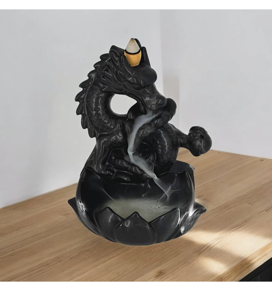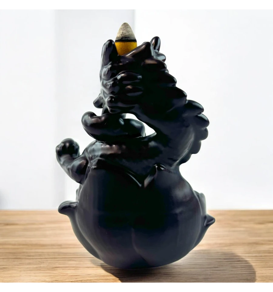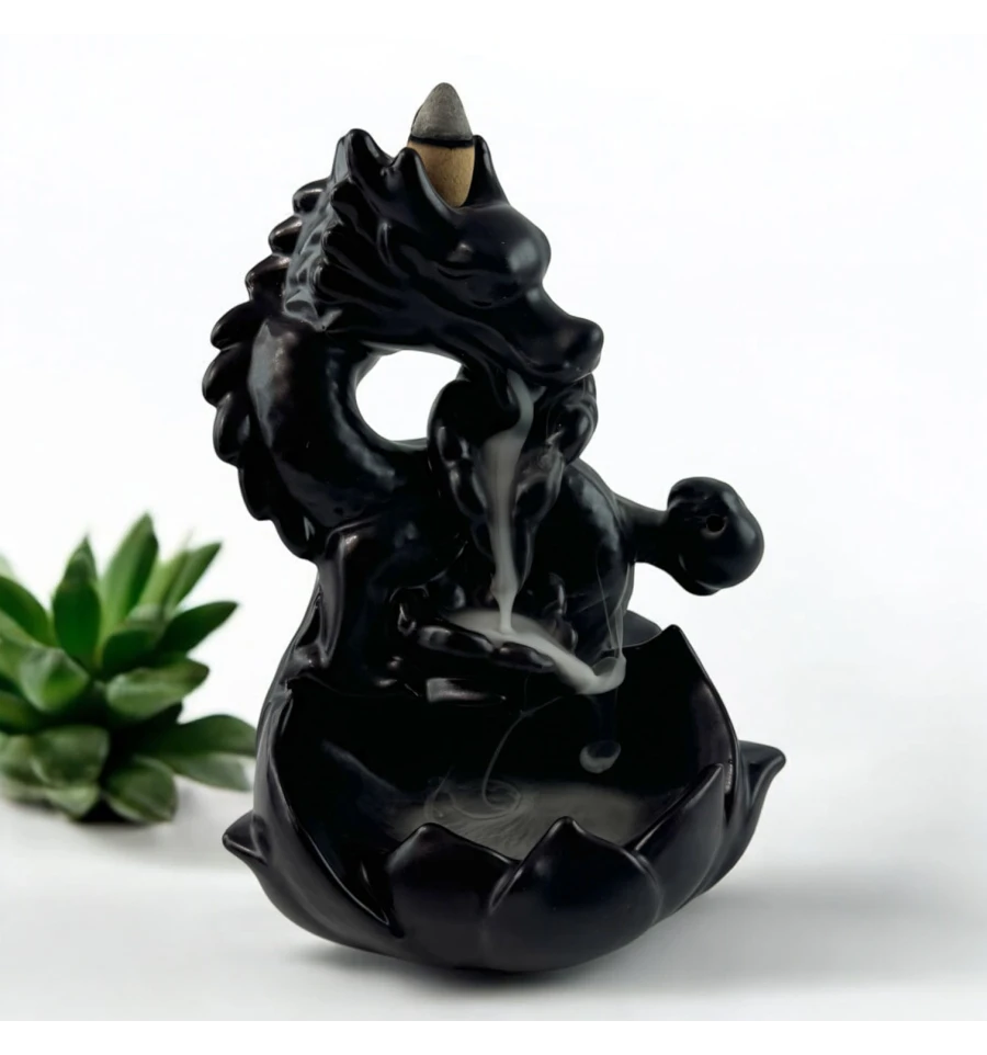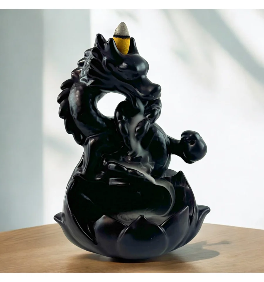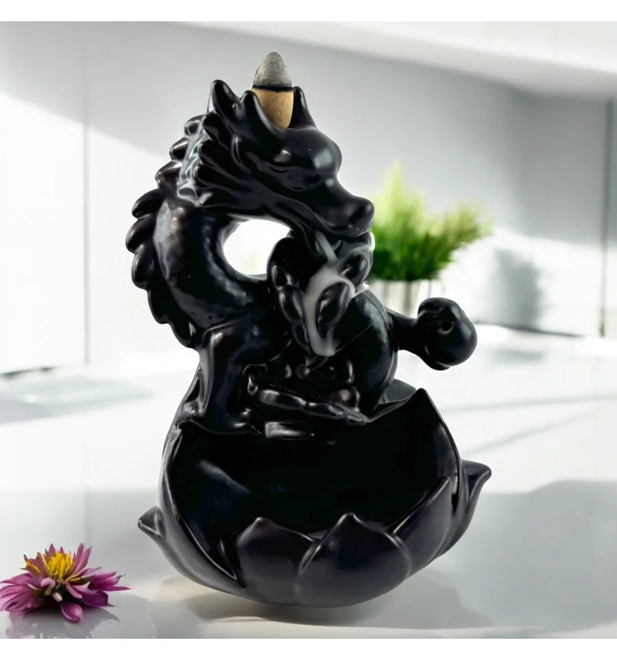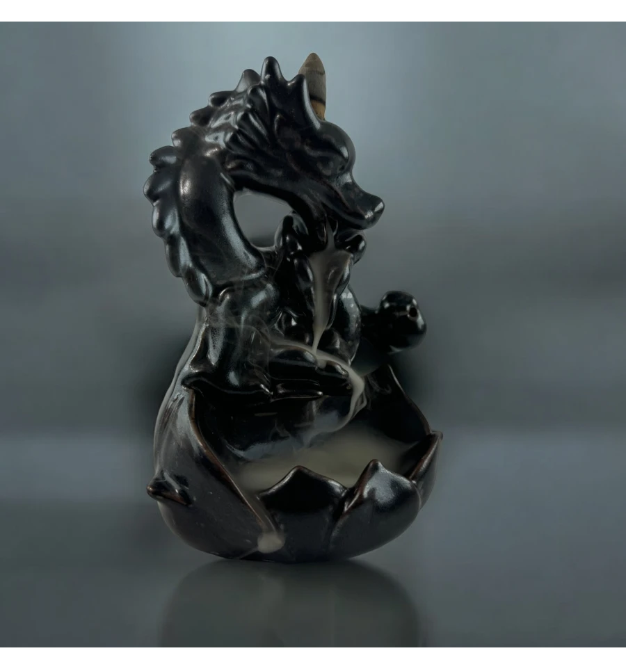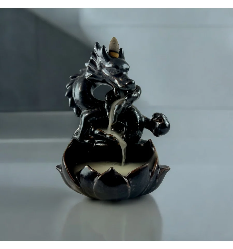 Ця вишукана підставка у формі дракона стане справжньою окрасою вашого інтер'єру. Її особливість — ефект зворотного диму, який плавно спускається вниз, створюючи зоровий ефект, що зачаровує. Пахощі розміщуються на верхній частині фігурки, і дим, проходячи через дракона, повільно стікає вниз у чашу, наповнюючи простір м'яким ароматом.