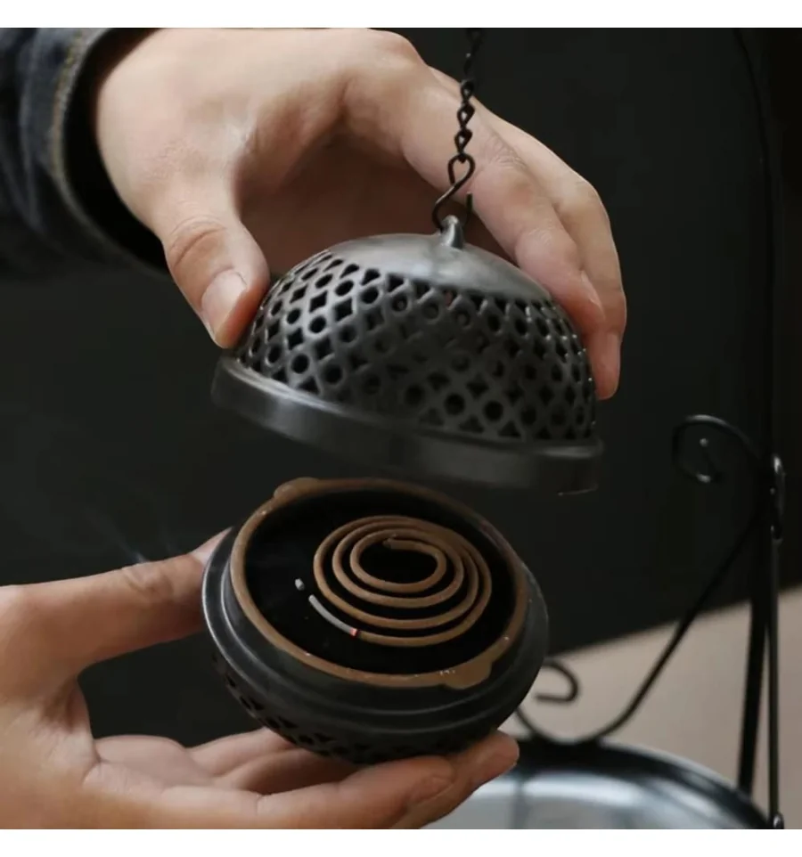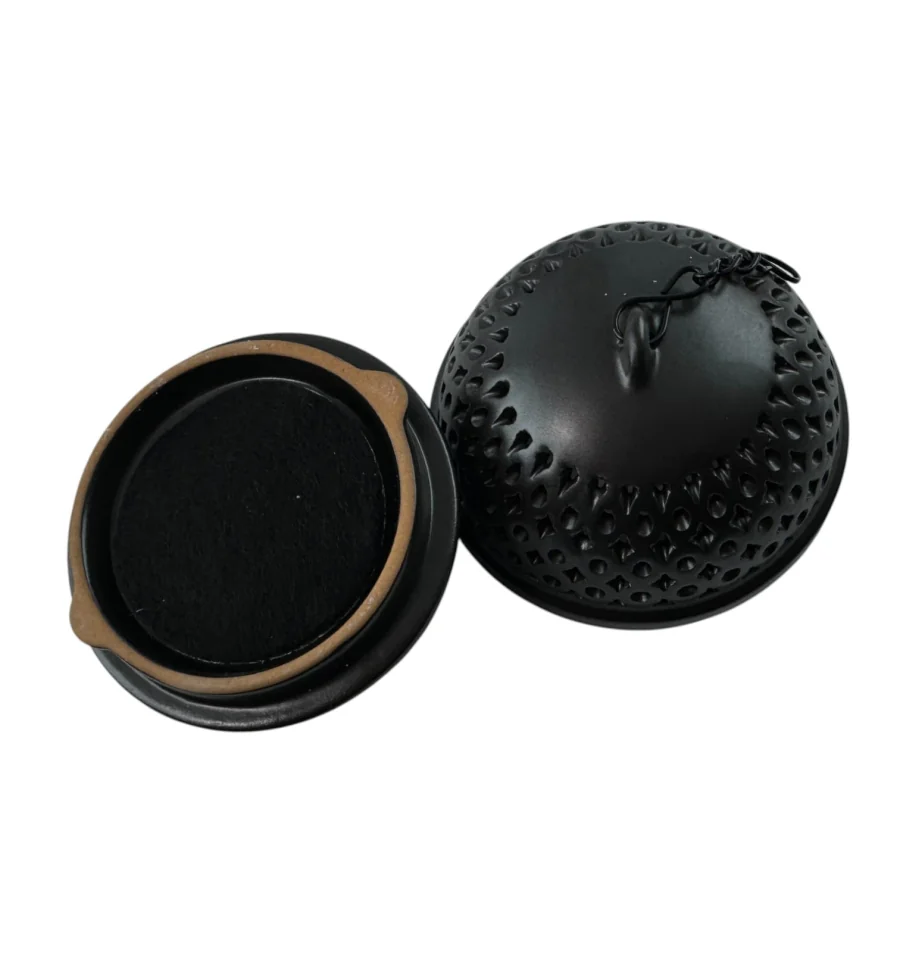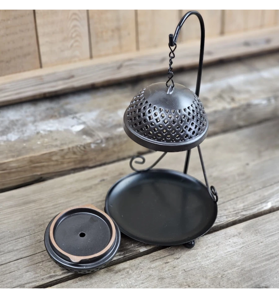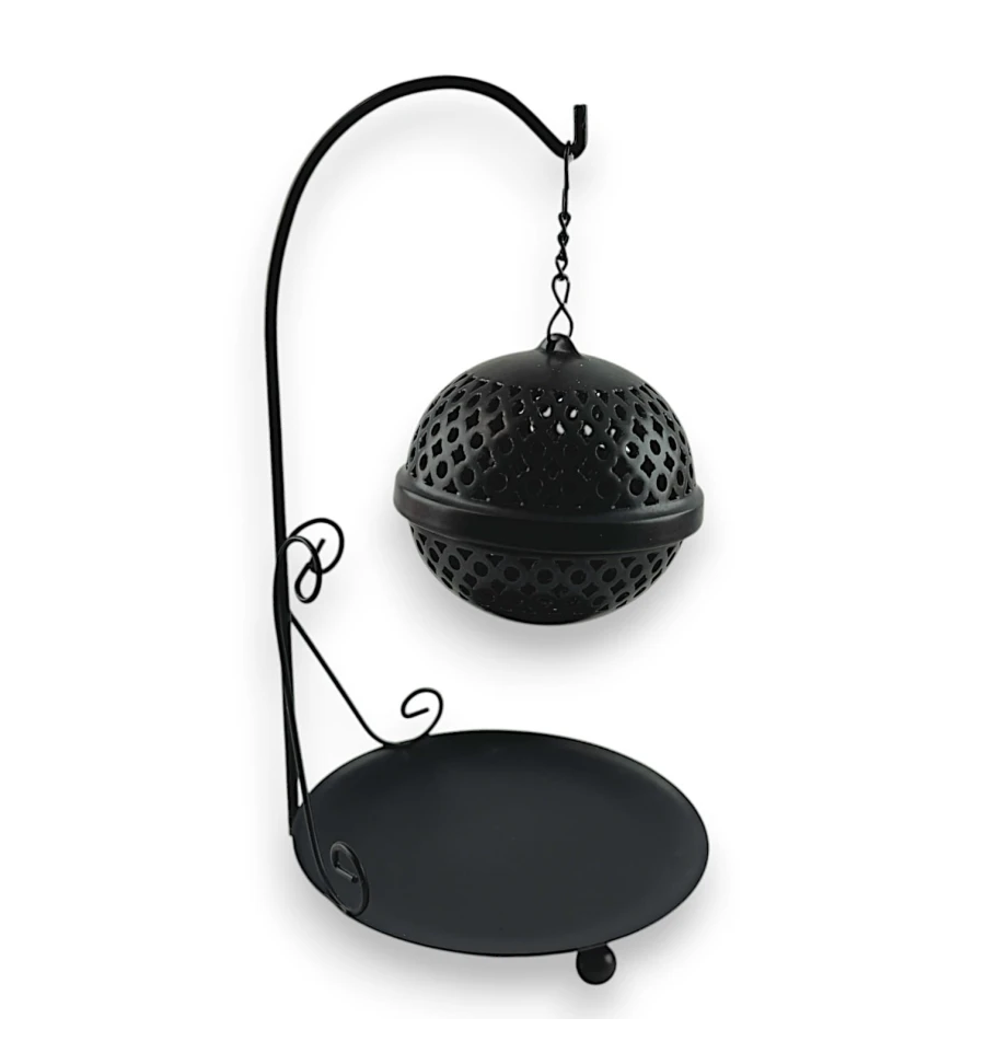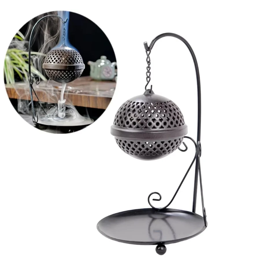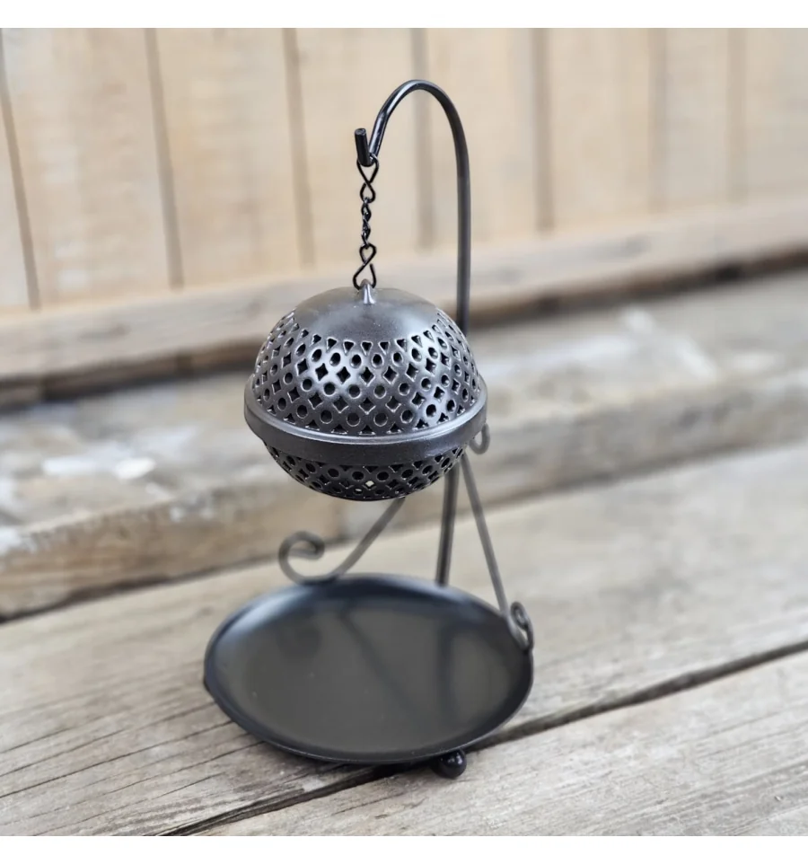 Ця витончена підставка для пахощів виконана у вигляді напівсферичної ажурної конструкції, підвішеної на витонченому металевому штативі. Її витончений дизайн гармонійно поєднується з практичністю: отвори в куполі дозволяють диму пахощів легко поширюватися, створюючи атмосферу затишку та спокою. Нижня тарілочка служить для збирання попелу, зберігаючи чистоту поверхні. Ідеальне рішення для тих, хто цінує естетику та комфорт в інтер'єрі, створюючи куточок для медитації та розслаблення.