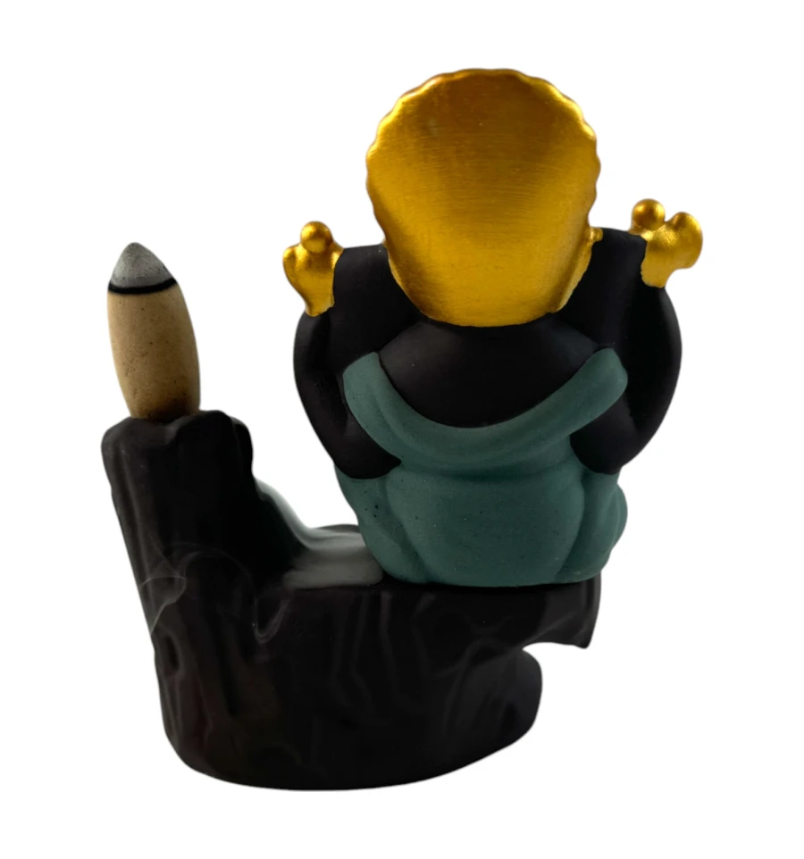 Ця елегантна підставка для пахощів із зображенням божества Ганеші виконана в техніці back flow, що дозволяє диму плавно стікати вниз, створюючи візуальний ефект, що зачаровує. Ганеша, прикрашений золотими деталями, символізує мудрість, удачу та захист від перешкод. Така підставка стане прекрасною прикрасою інтер'єру, що приносить спокій та духовну гармонію. Вона ідеальна для медитацій, релаксації та створення сприятливої атмосфери вдома чи у робочому просторі.