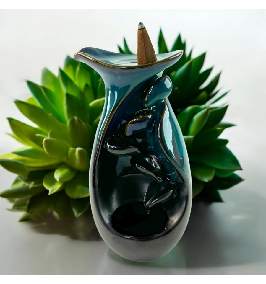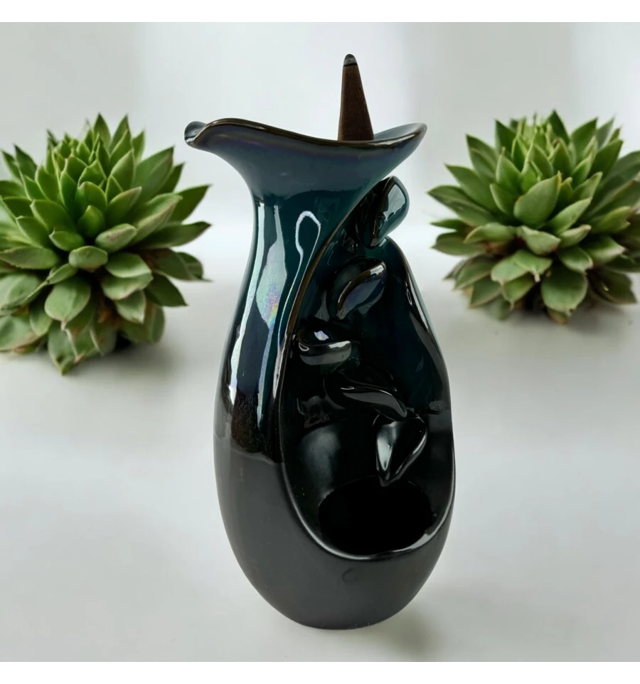 Створіть атмосферу умиротворення з підставкою для пахощів "Тиха Вода". Цей стильний аксесуар виконаний у вигляді вигнутого водоспаду, яким повільно стікає дим, створюючи ефект каскадного потоку. Чорний блиск кераміки підкреслює витончені вигини форми, а плавний перебіг диму зачаровує та занурює у стан спокою. Підставка "Тиха Вода" стане чудовим доповненням до вашого інтер'єру, створюючи відчуття затишку та розслабленості, ідеально підходячи для медитацій, релаксації та створення комфортної атмосфери будинку.