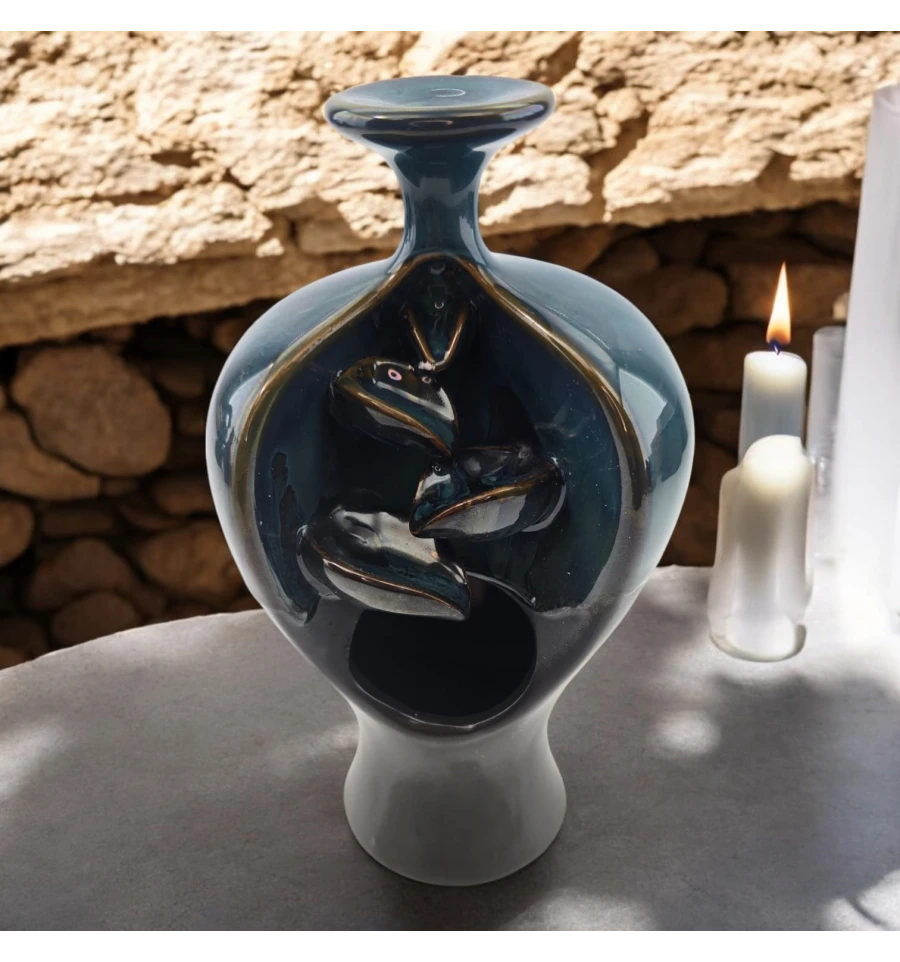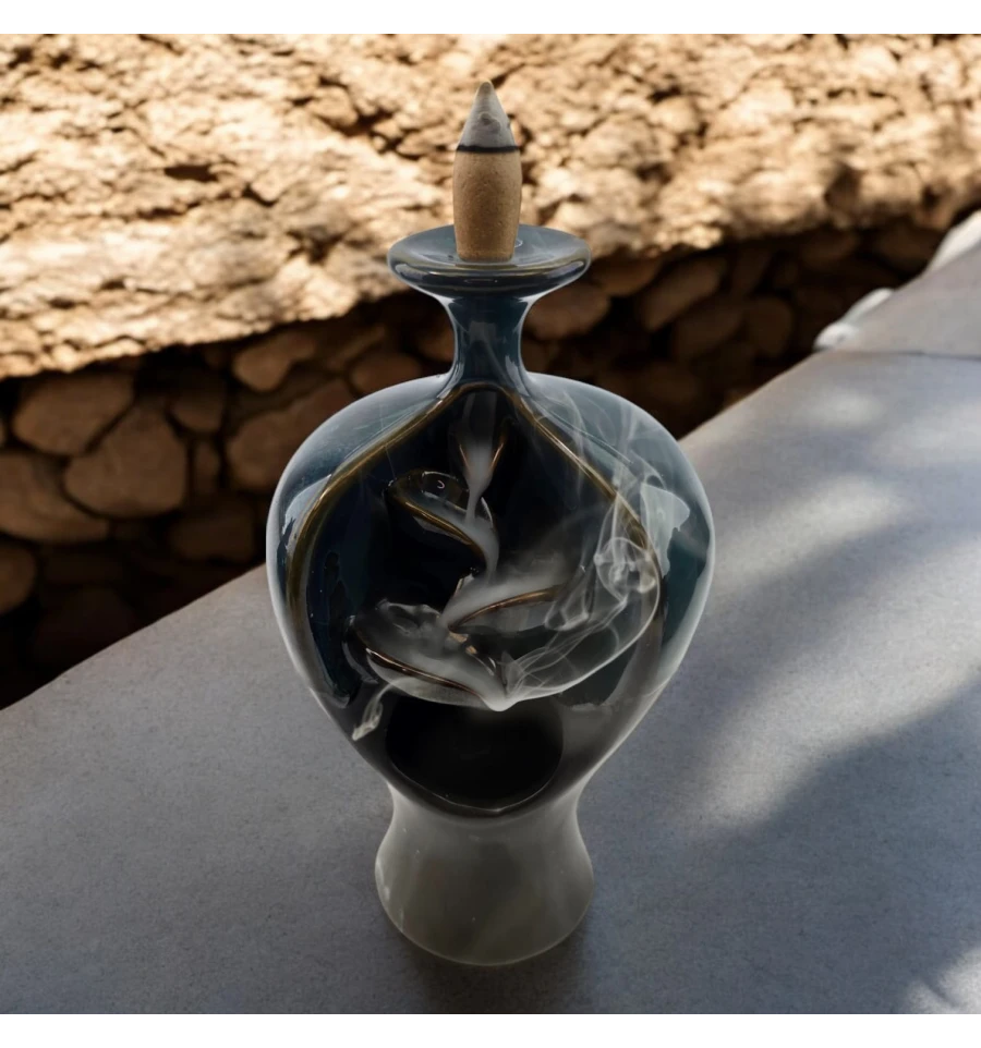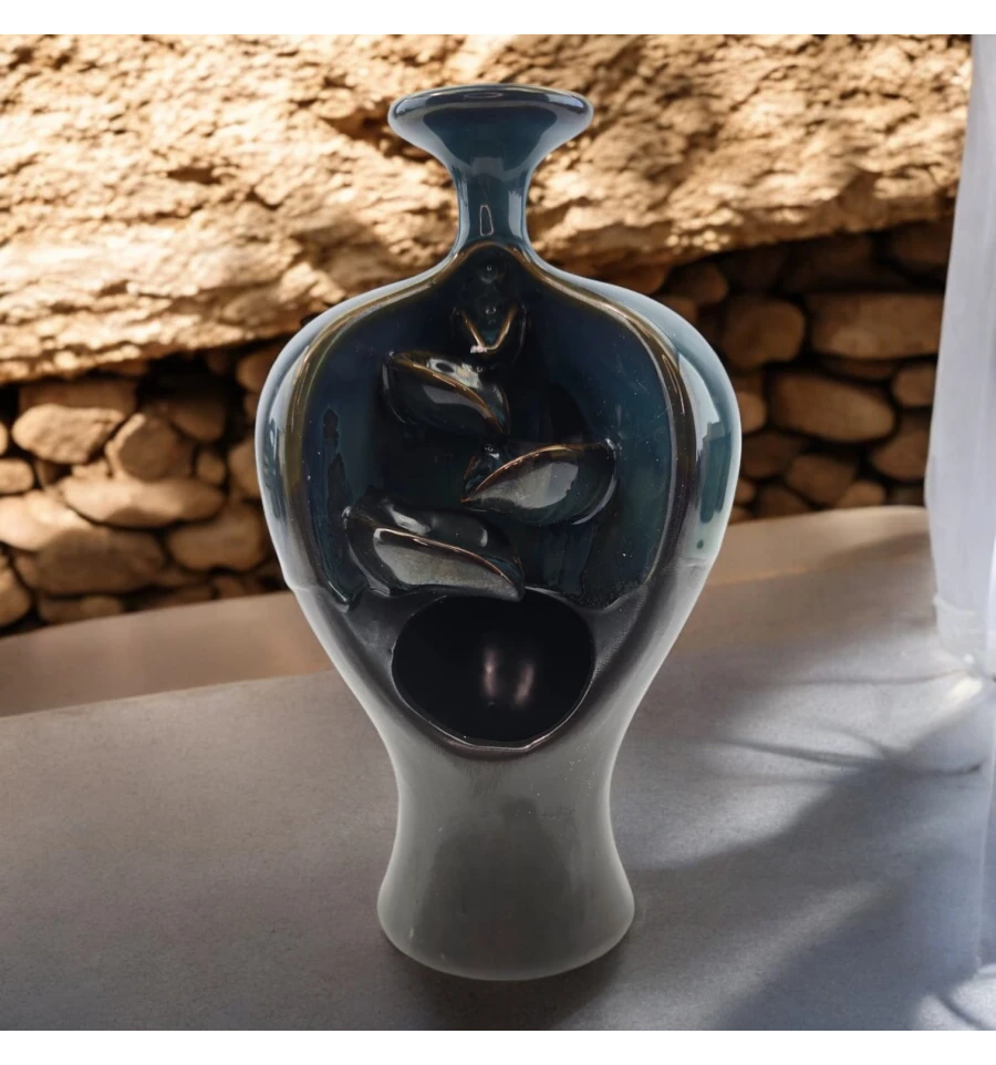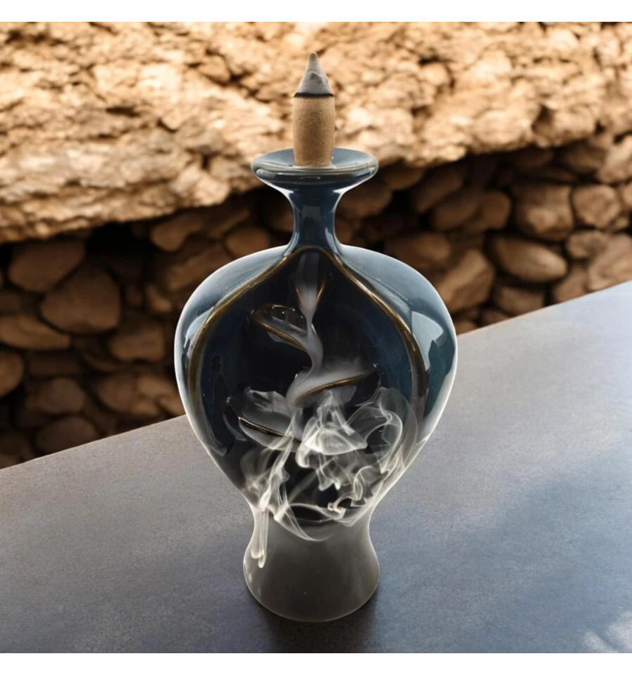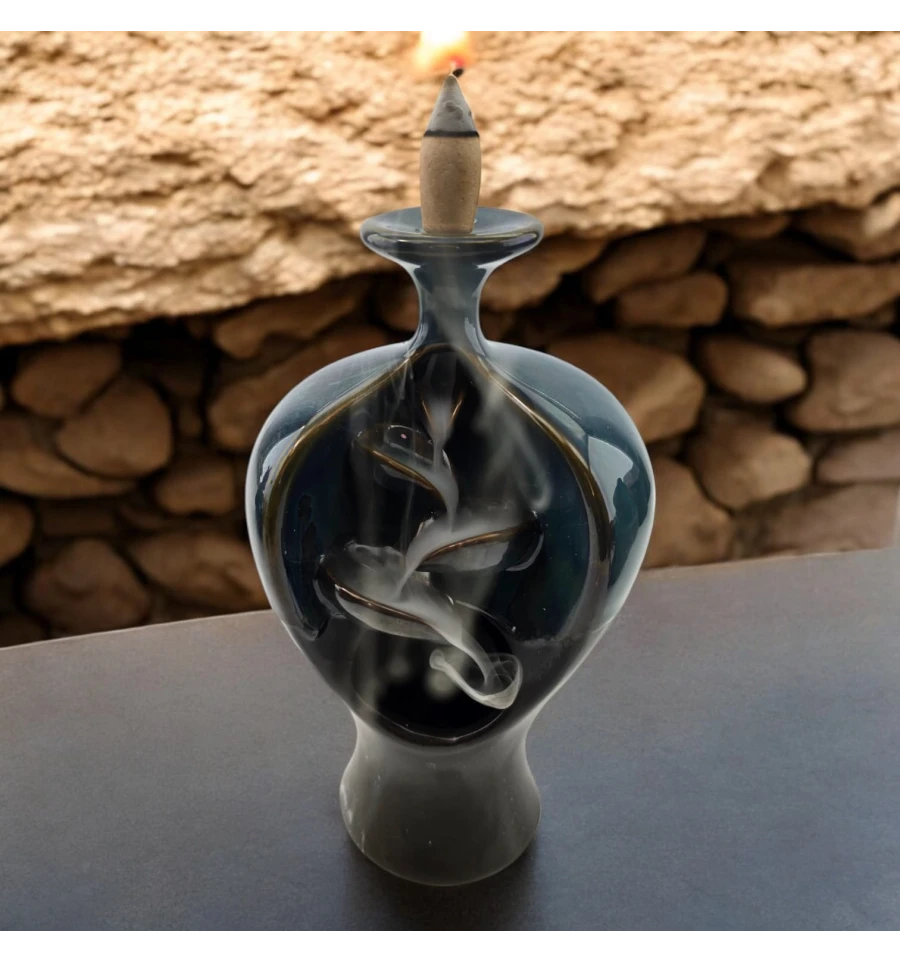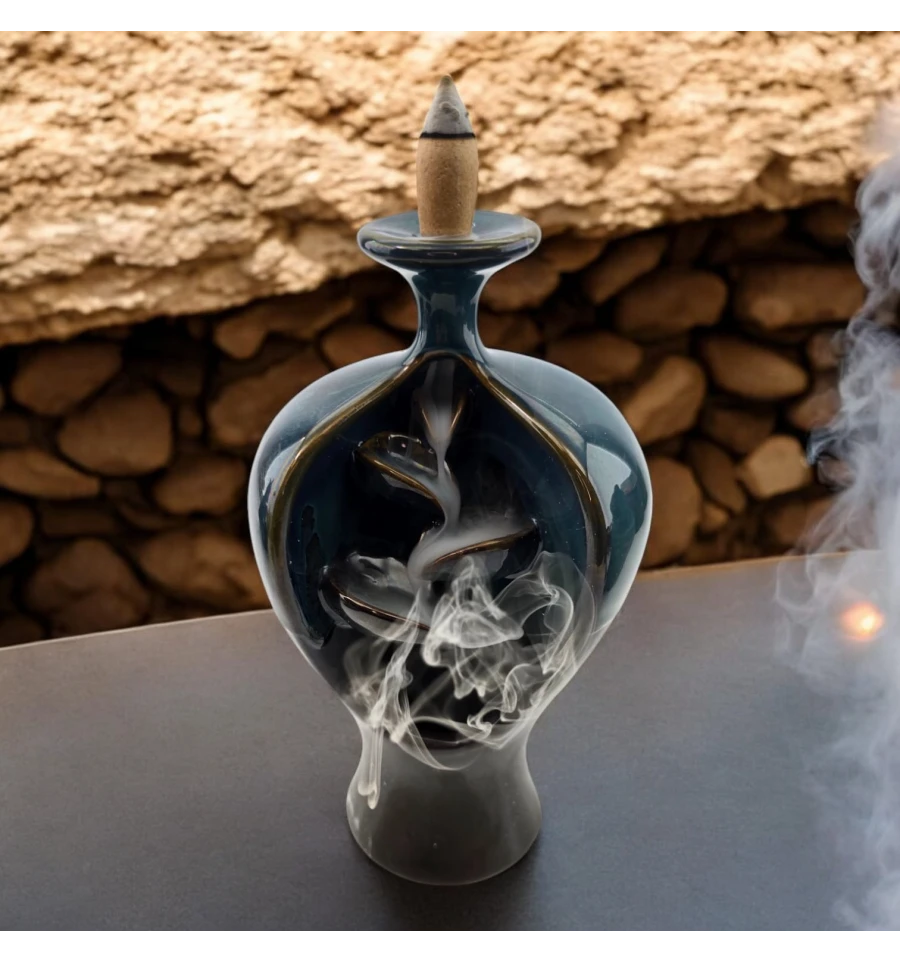 Опис: Ця елегантна керамічна підставка для пахощів Back Flow виконана у вигляді вишуканої вази, крізь яку плавно проходить дим, створюючи гарний танцювальний ефект. Вона стане чудовим доповненням для вашого інтер'єру, додаючи атмосферу спокою та затишку. Дим м'яко стікає вниз, утворюючи візуальний ефект, що зачаровує.