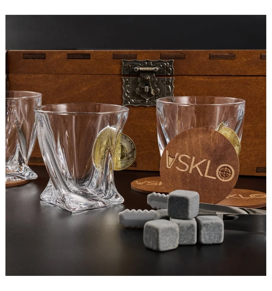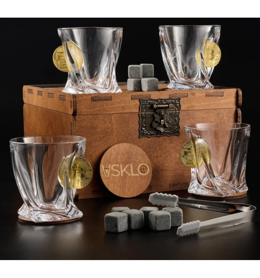 - 4 кришталеві склянки (з елементами: біткоїн)