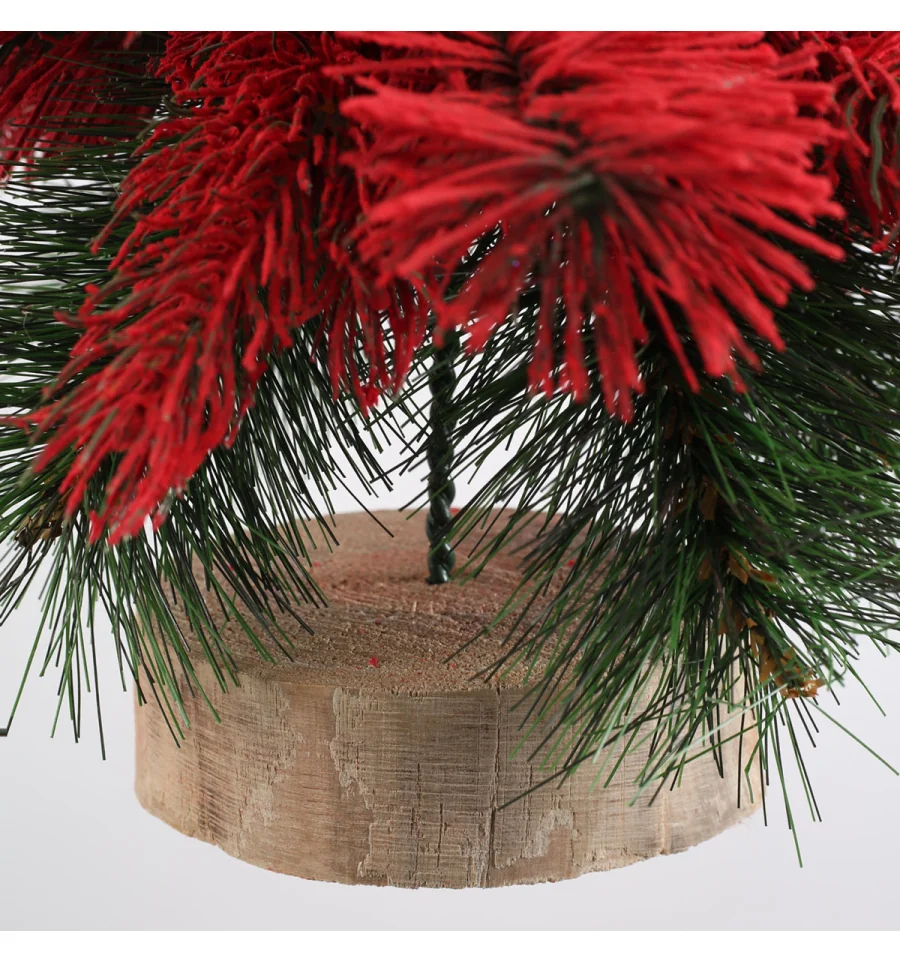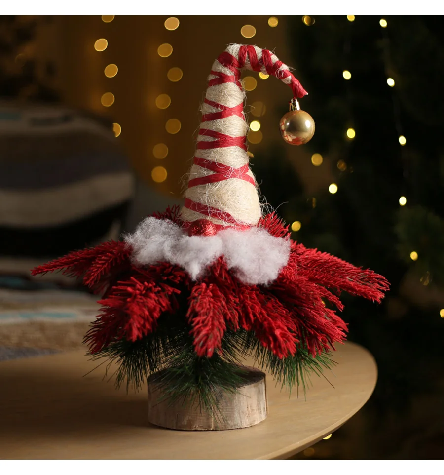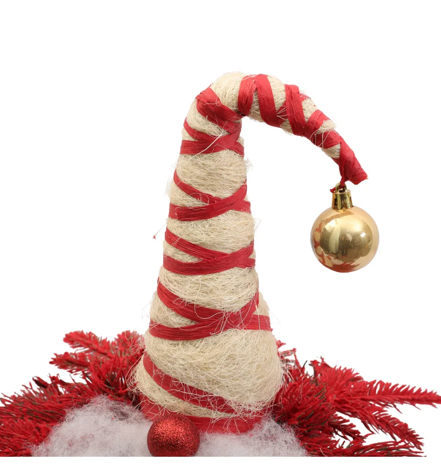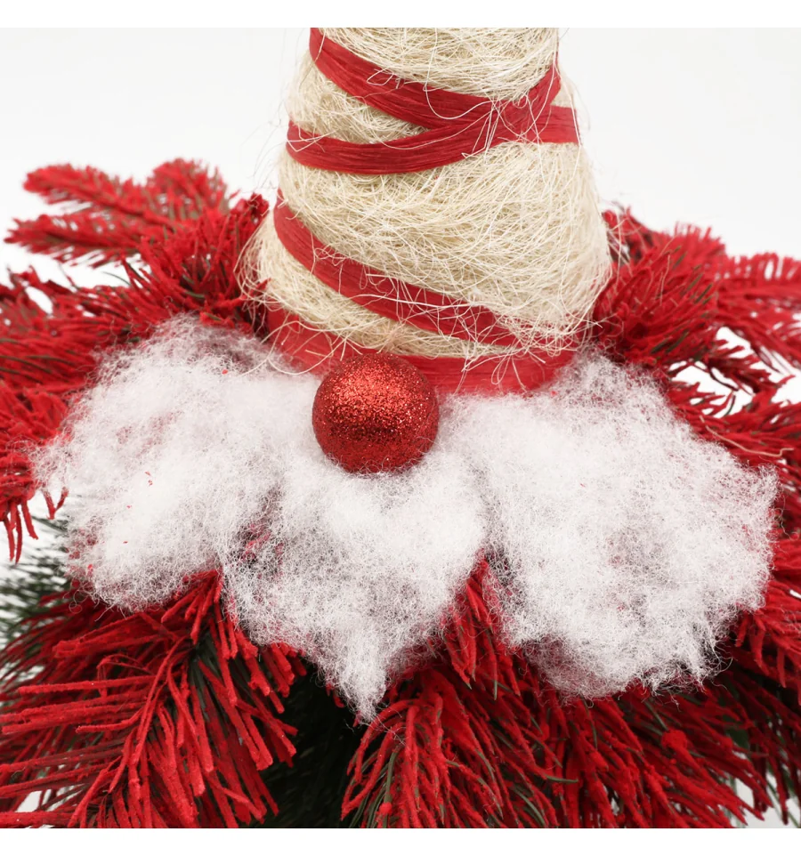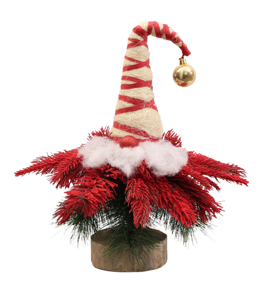 Любителям незвичайних і дуже оригінальних речей ялинка у вигляді гнома подарує відмінний настрій і стане чудовою прикрасою інтер‘єру у період новорічних і різдвяних свят. Поставте таку ялину на столі, полиці, тумбочці, на прилавку магазина, в прикасовій зоні – і казкова атсфера легкості і веселощів буде гарантована. Оригінальність, а також компактність і якісне виконання даної прикраси — це і є її головні переваги. Матеріал: литі гілочки, плівка ПВХ, дріт, пінопласт; дерев‘яний пеньок. Висота: 47 см. Габарити: 0,45 м.