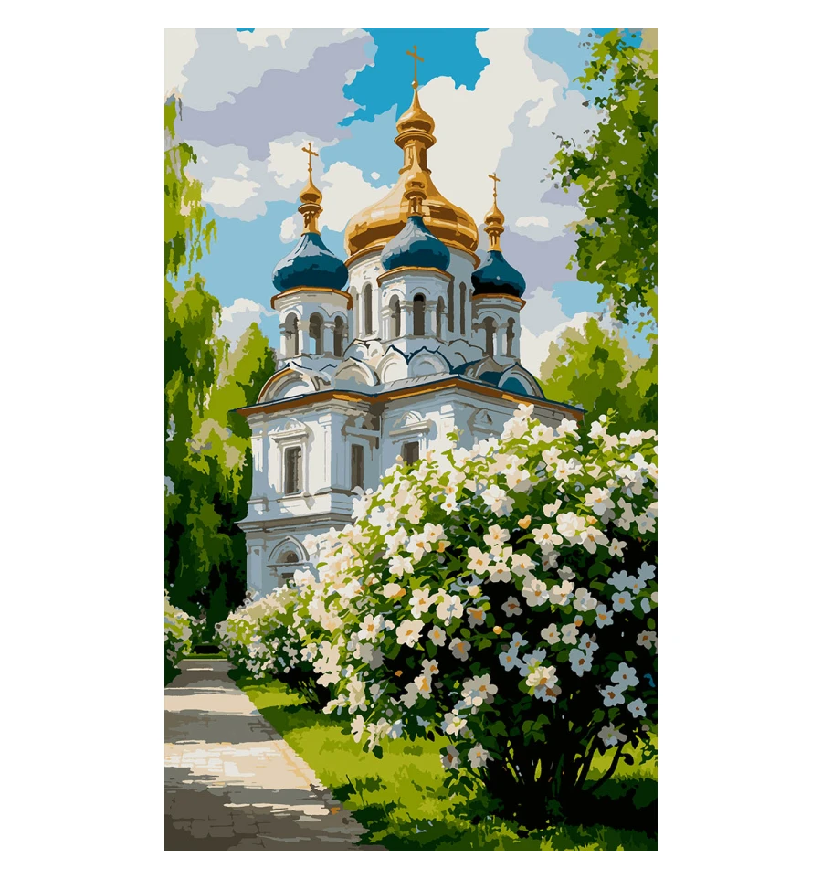 Картина за номерами ТМ SANTI Храм навесні - це прекрасна можливість захопливо провести час, розвинути творчі здібності та створити вражаючий витвір мистецтва власними руками, а також чудовий подарунок для себе чи своїх близьких!