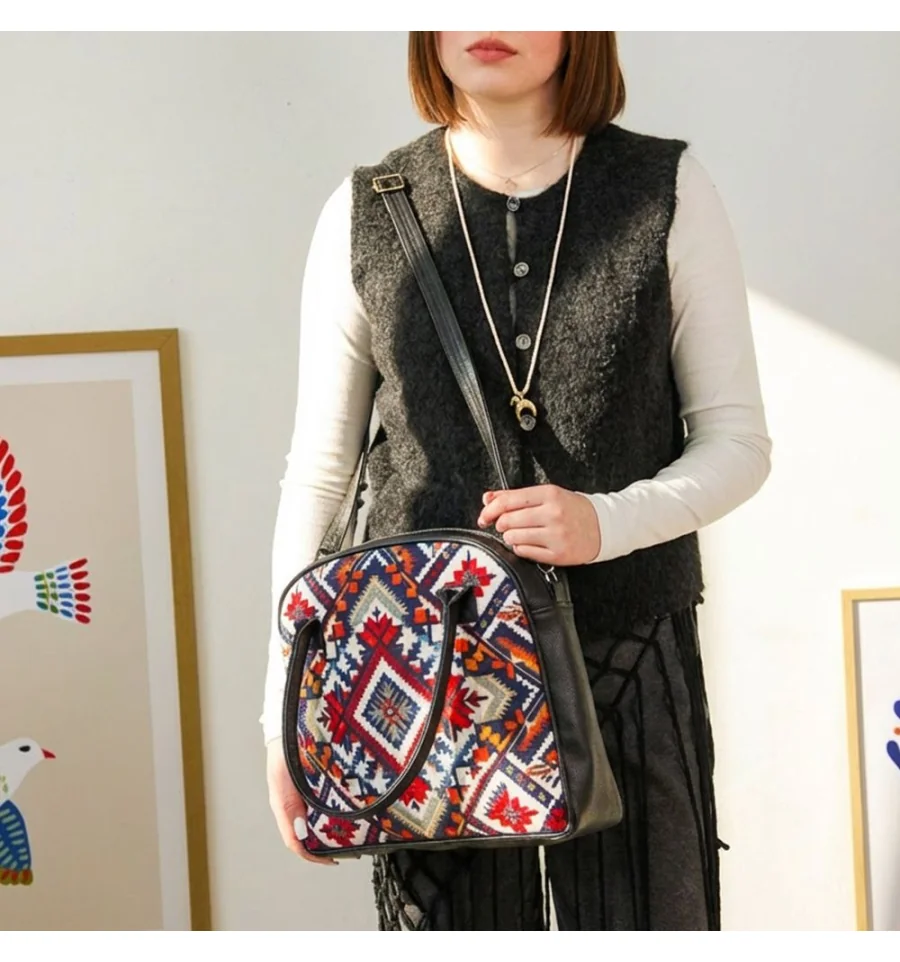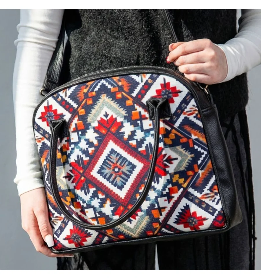 Зручна жіноча сумка з принтом. Яскравий приклад стильної та зовсім не банальної жіночої сумки для модної особи.