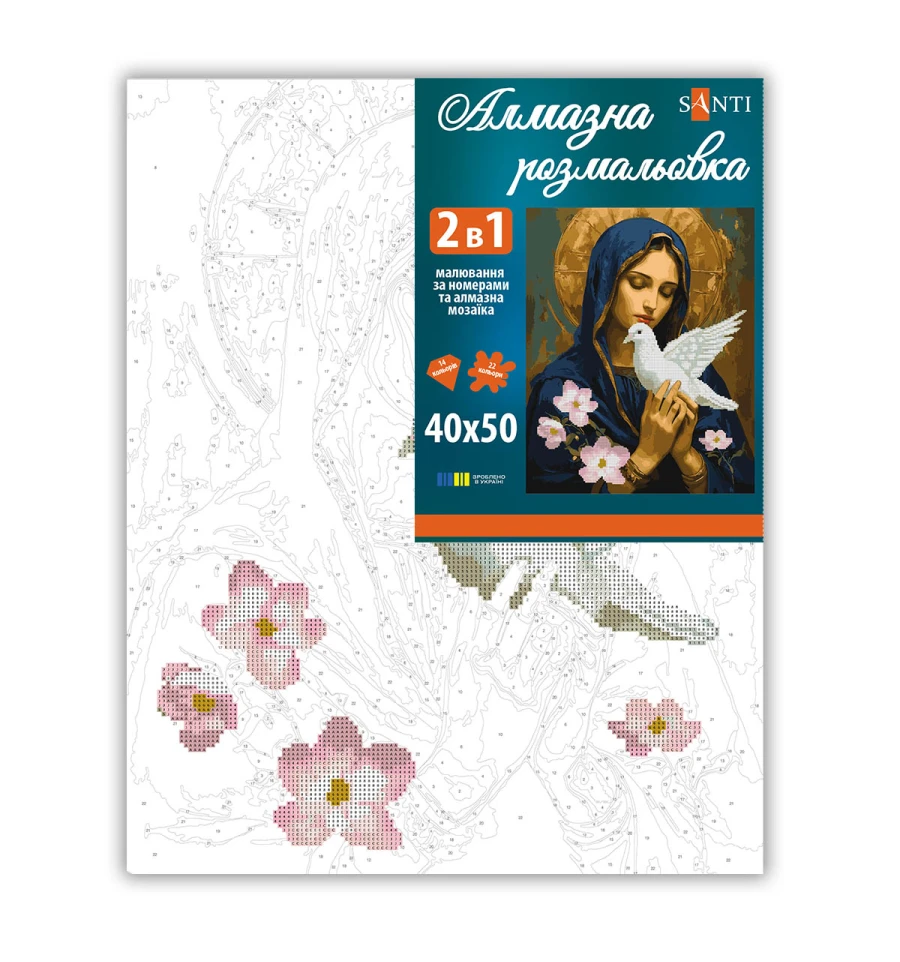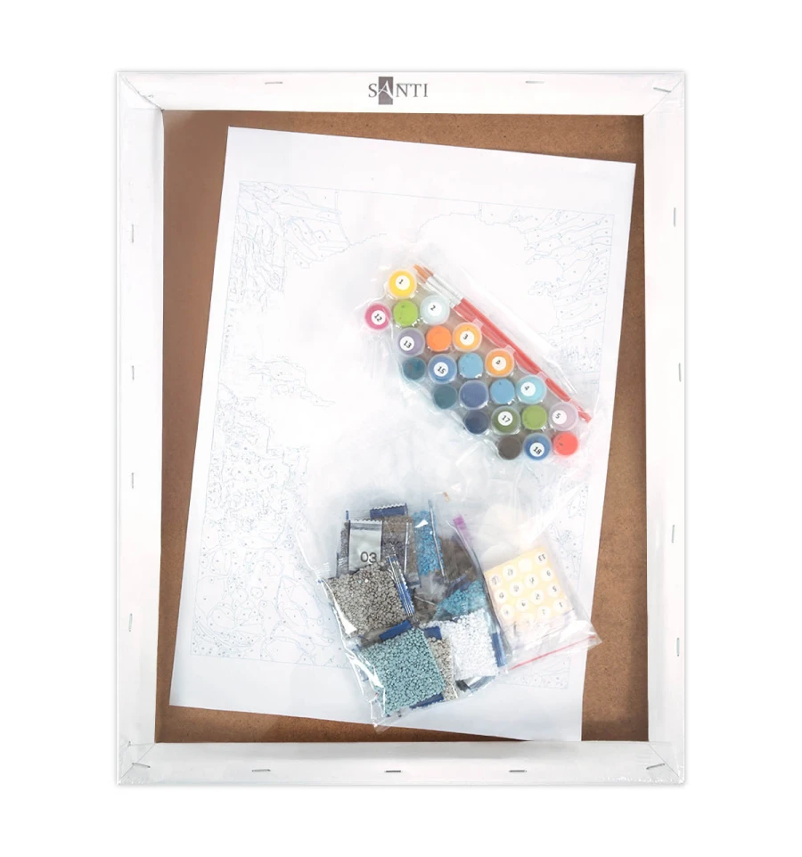 Картина за номерами з алмазною мозаїкою 2 в 1 ТМ SANTI Мир у долонях — це чудова можливість цікаво провести час, розвинути творчі здібності та створити ефектний витвір мистецтва власними руками, а також прекрасний подарунок для себе чи близьких.