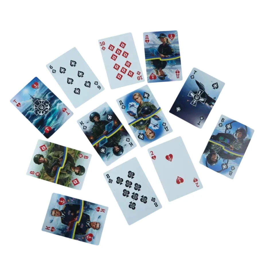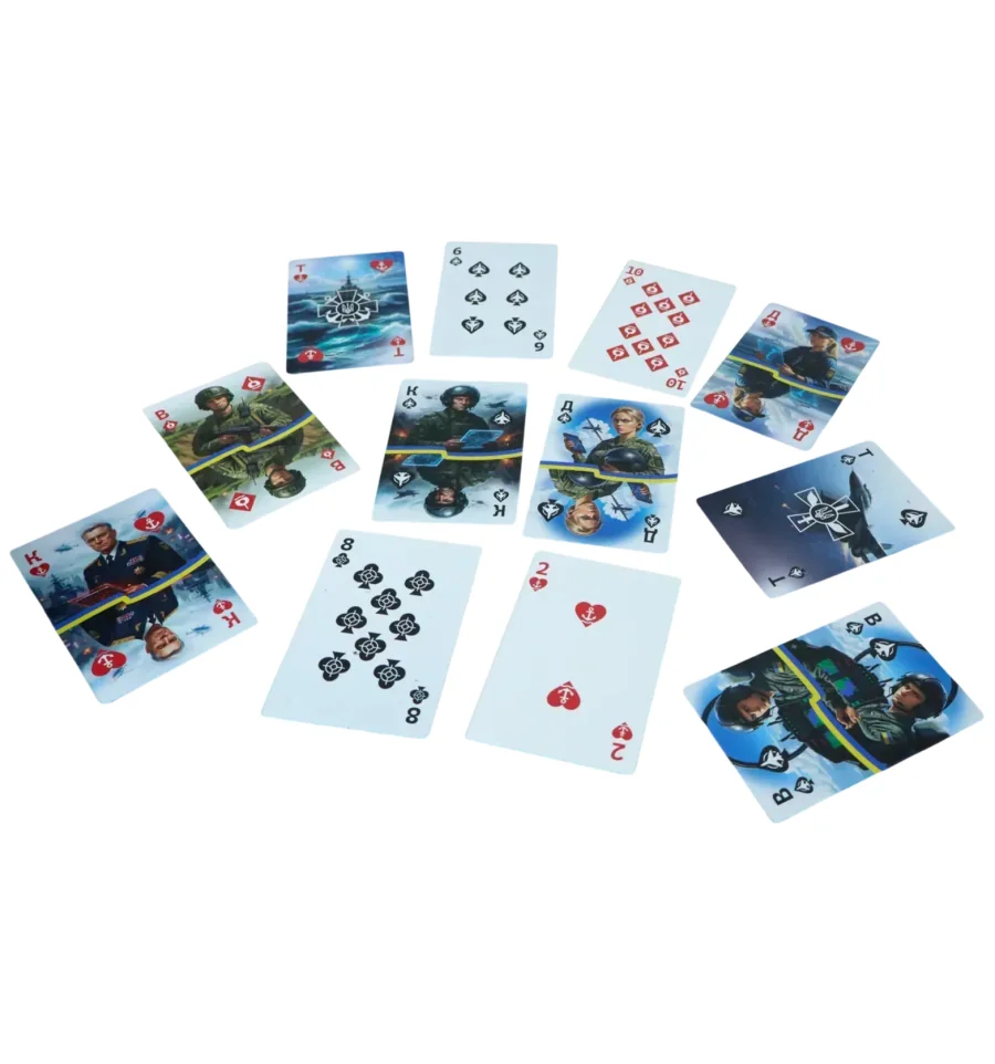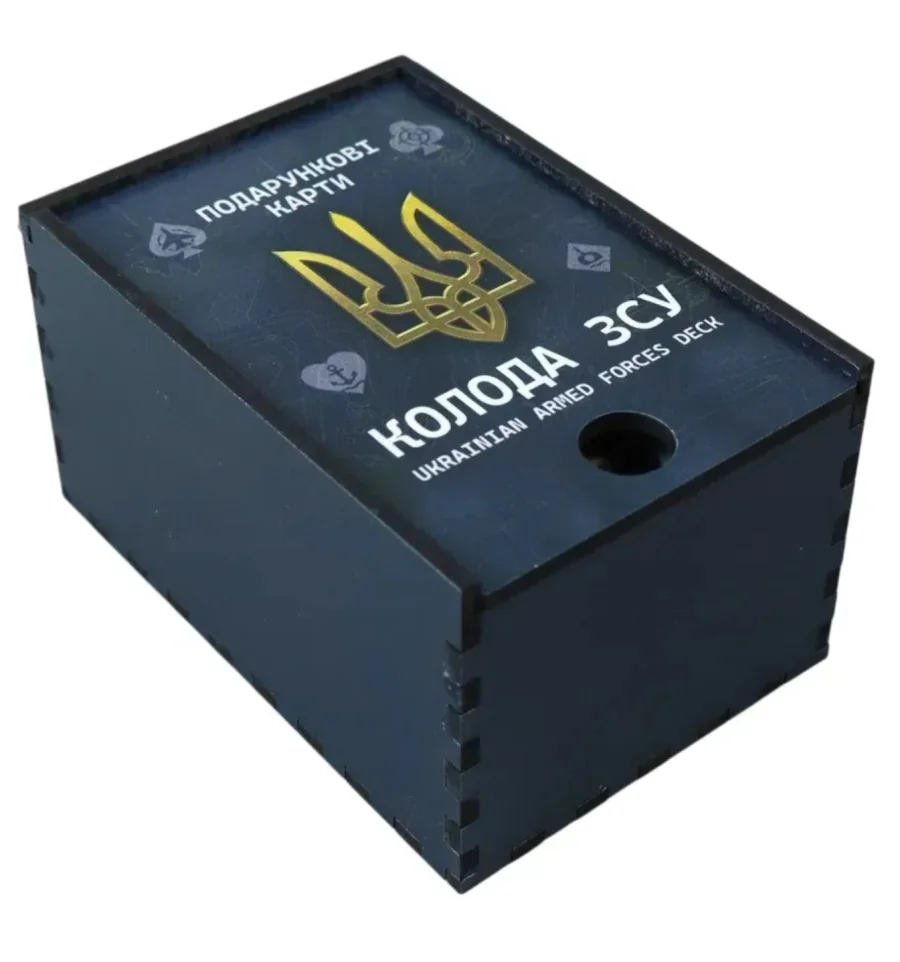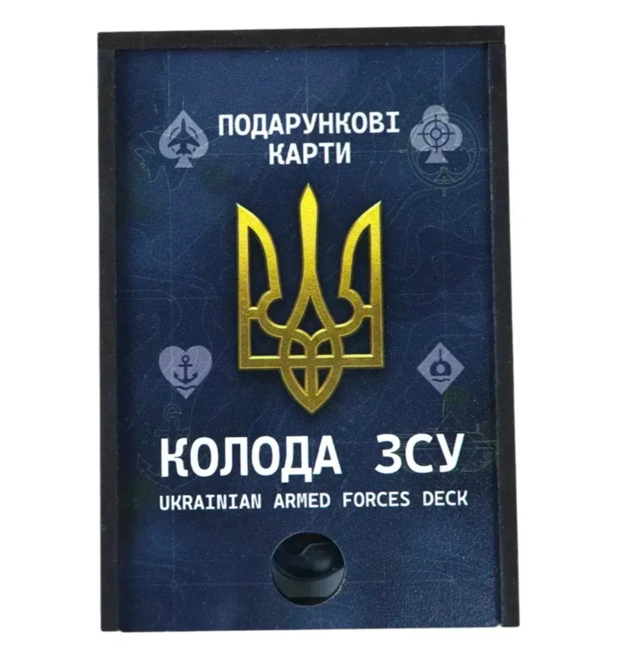 Подарункова колода гральних карт, присвячена Збройним Силам України. Виконана з міцного пластику, розрахована на активне використання та довгий термін служби. Стильний дизайн з військовою символікою робить колоду не лише практичною, а й колекційною.